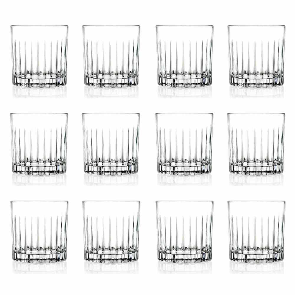12 double old fashioned luxury glasses, versatile design in decorated eco-crystal 100% made in Italy.