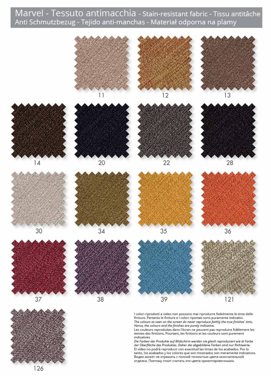 Structure wood covered with a layer of polyurethane and metal mechanical parts Padding eco-friendly differentiated-density polyurethane foam covered with a layer of dacron Feet PVC