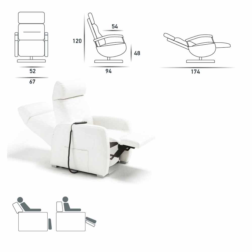Modern design 2-motor swivel armchair made in Italy Cassia