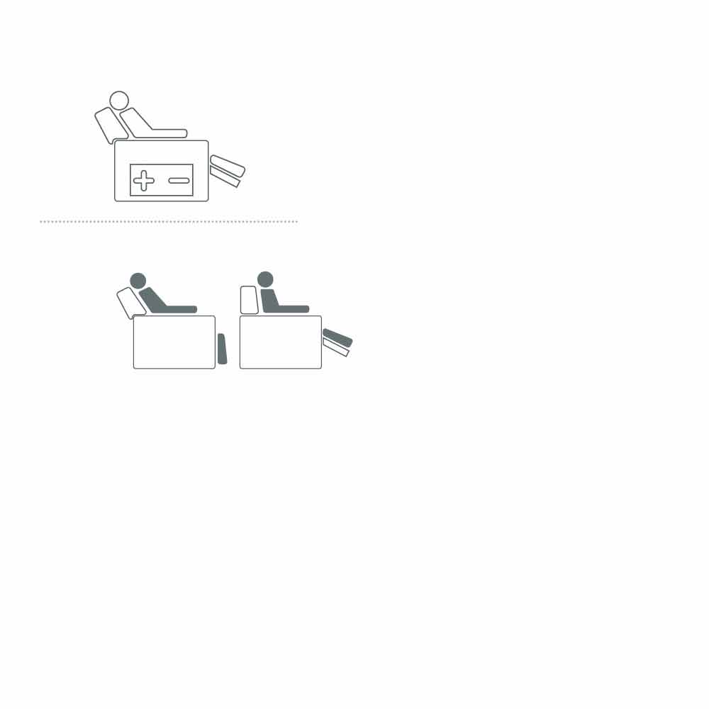 Mechanisms to one or two engines, the movement of footboard and back alternately autonomous or independent, lift function, alzapersona device that allows to easily assume the upright position, vibromassage for a pleasant distributed effect on the back, seat and footboard, automatic or motorized movement, are these are the possibilities and the combinations developed: a harmonious set of solutions to satisfy every need.