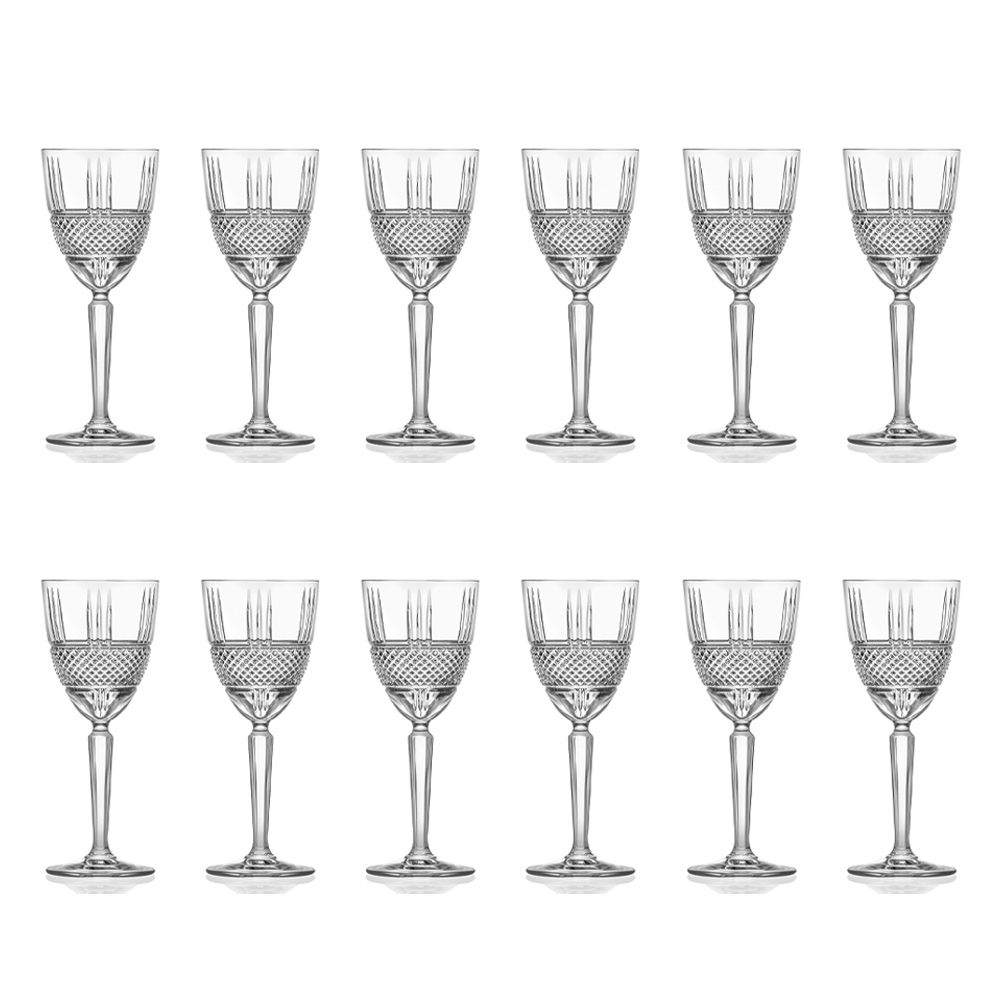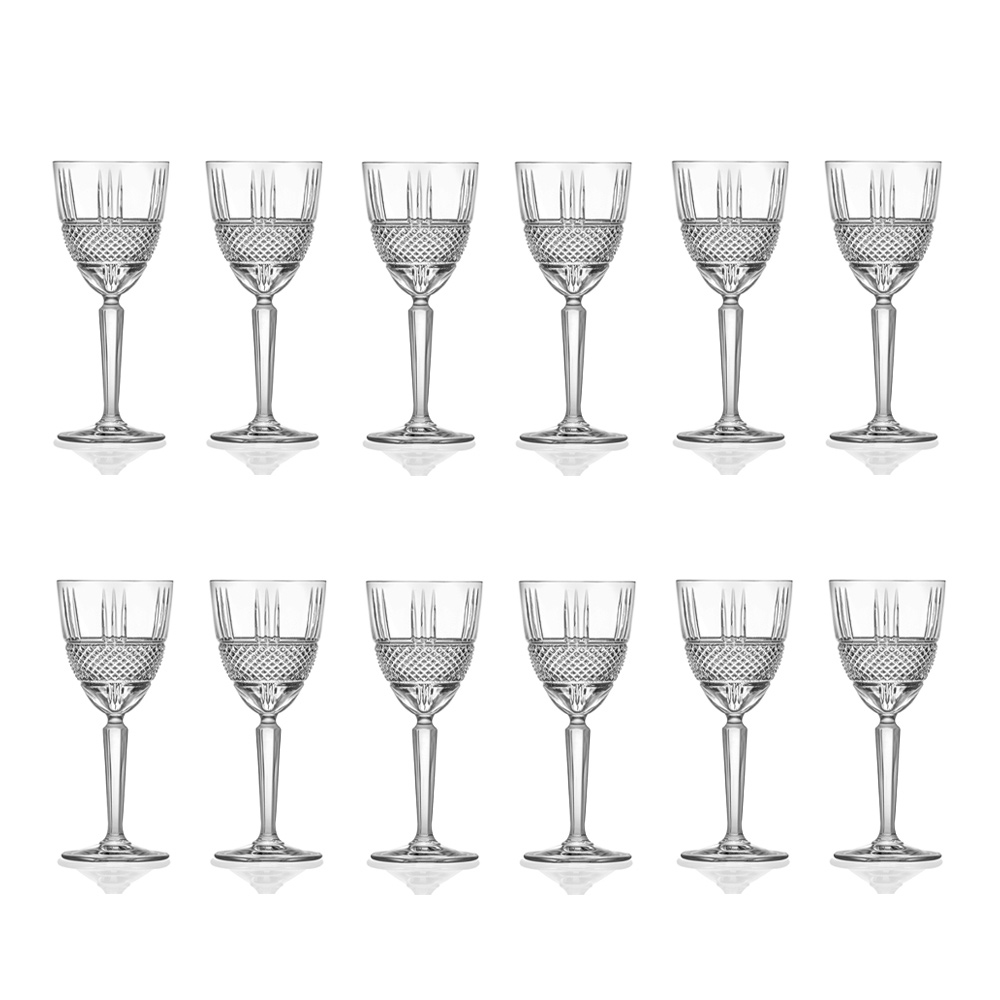 Set of wine or water glasses in diamond-cut eco-crystal, 12 pieces made in Italy.