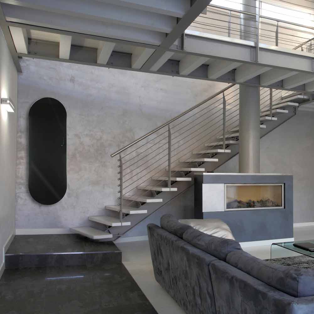 - Design: The radiators are the result of a careful study on shapes and on their visual-emotional impact on man. Their clean and essential design, together with the customisation of finishes and size, makes them adaptable to any environment and style, from classic to cutting-edge modern. Compared to traditional heat emitters, the radiators feature limited overall dimensions as, by minimizing the thickness of the plate, they reach a maximum overall size of 6 cm from the wall.