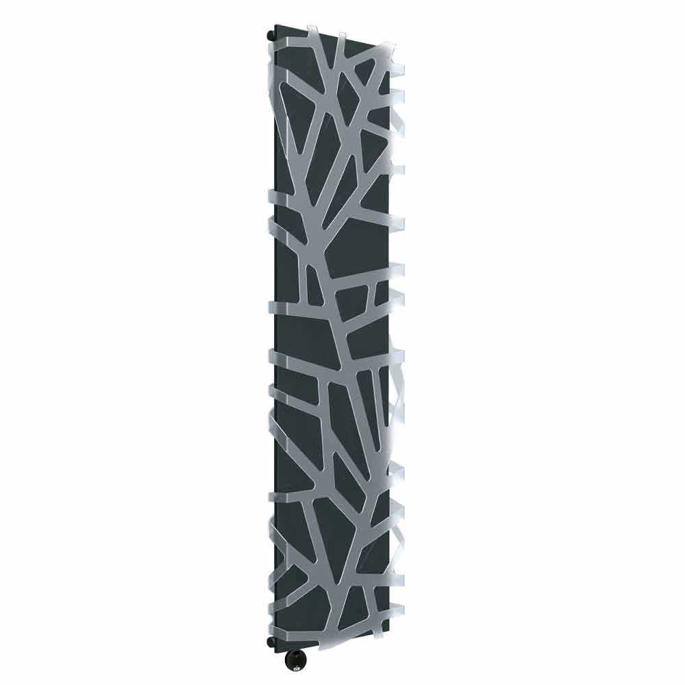 Vertical electric wall-mounted radiator of modern design in steel and methacrylate, made in Italy.