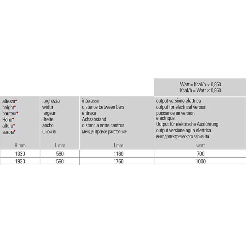 The 110 mm thermostat must be added to the height. White thermostatic box as standard for white radiators; chrome for the colored radiators and stainless steel finishes. Single-phase 230 volt power supply.