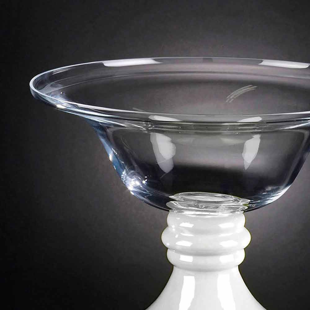 Elegant vase for interiors in white and transparent glass Made in Italy.