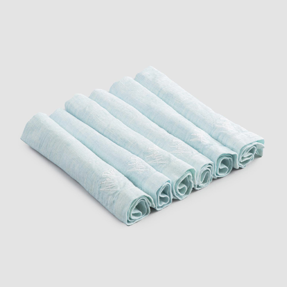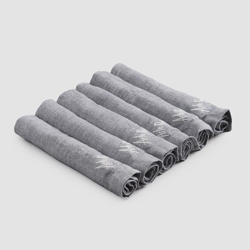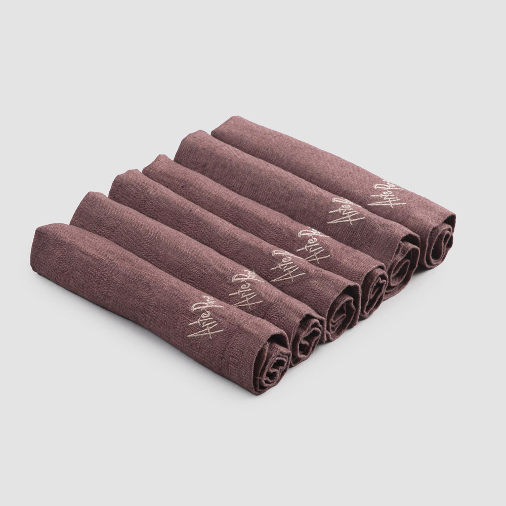 Heavy colored linen napkin set with folded edge, 6 luxury pieces made in Italy.