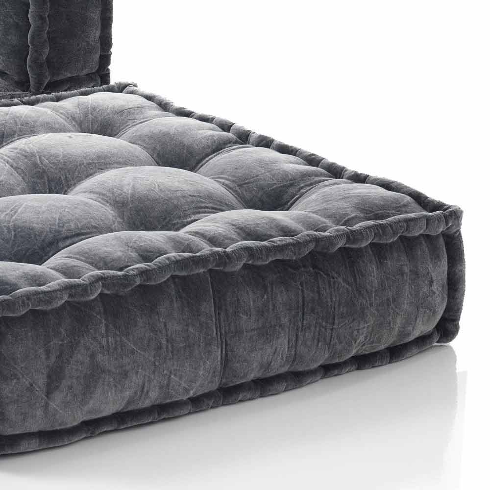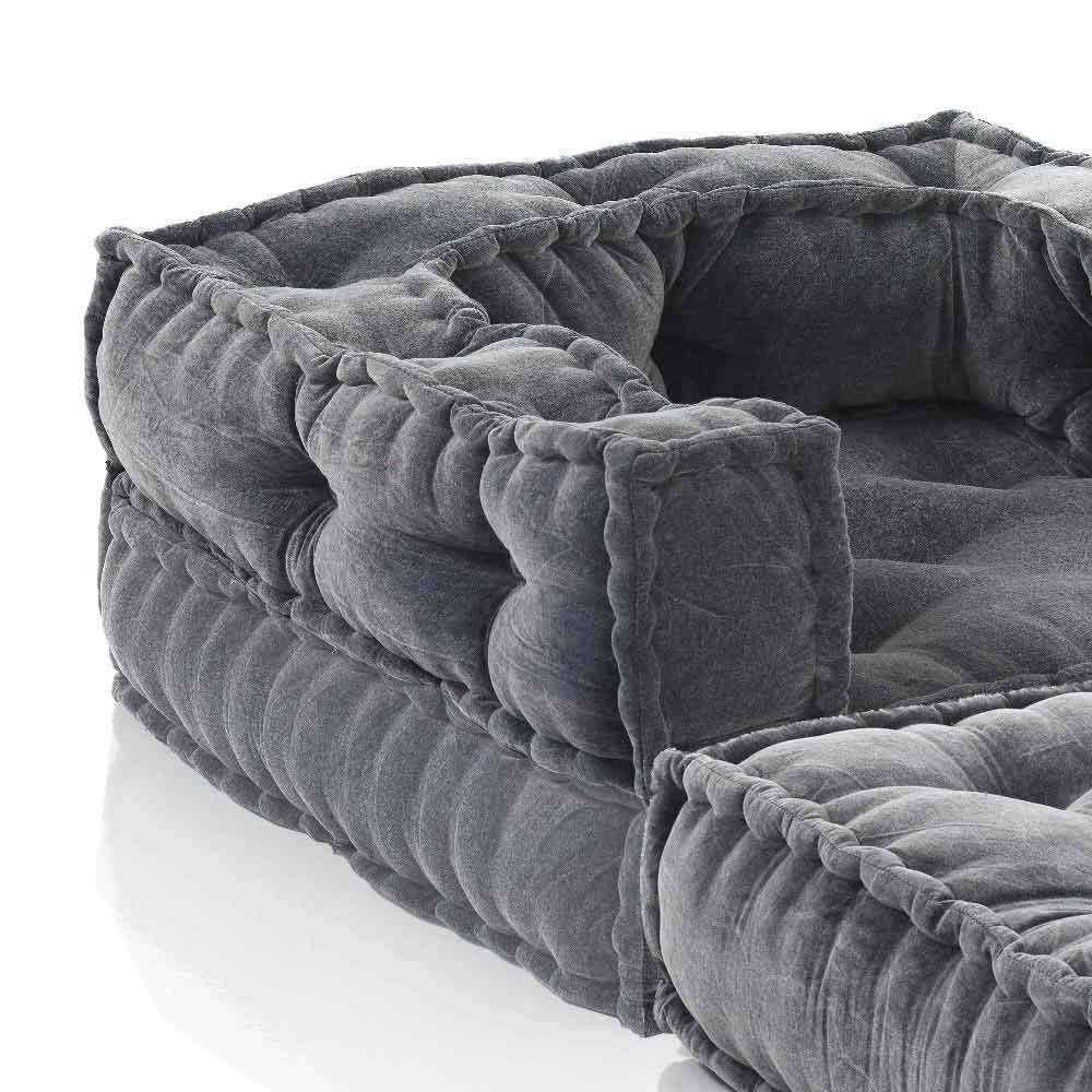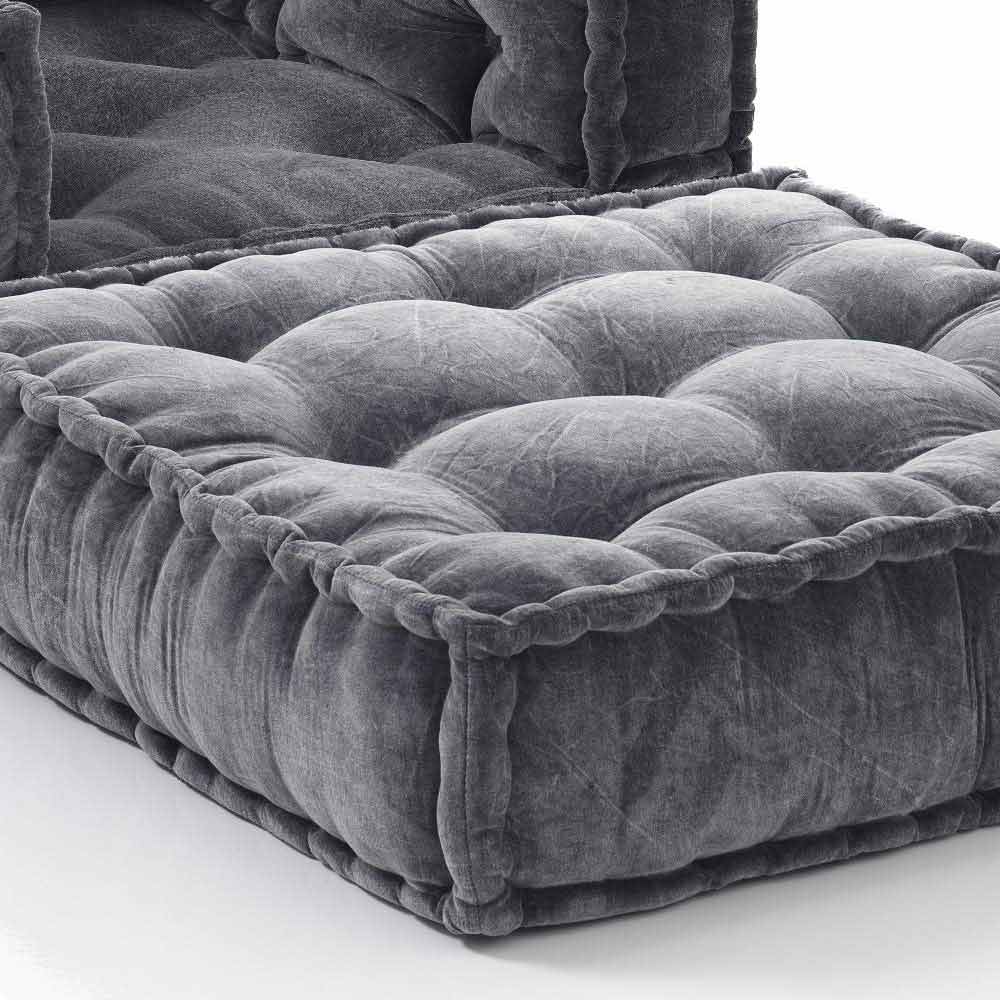 Ethnic lounge chaise longue armchair made of gray or blue and white velvet.