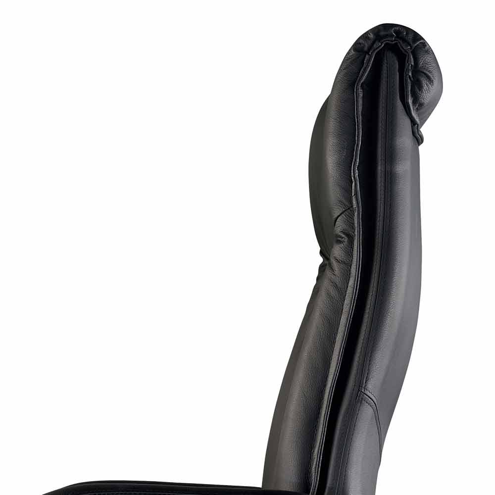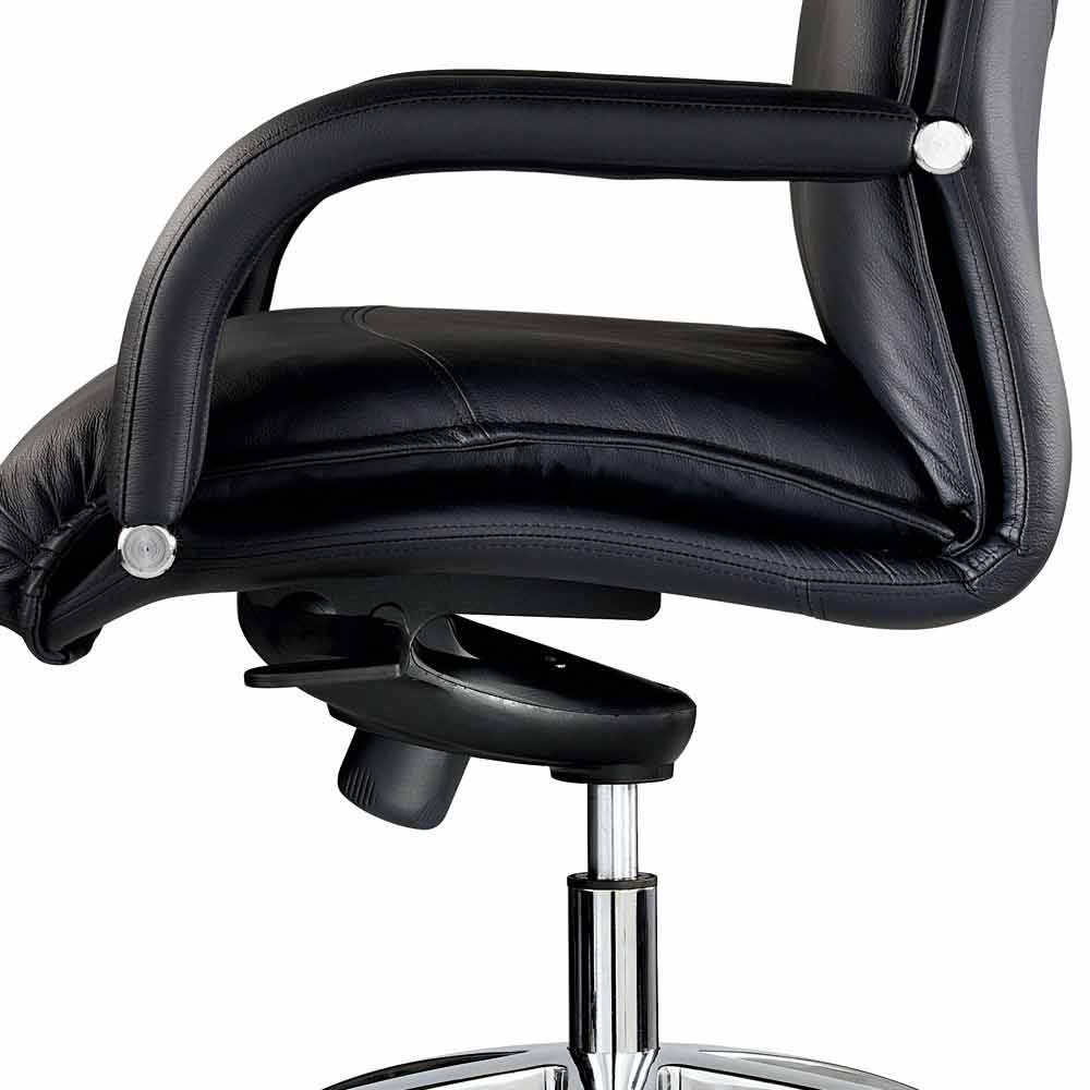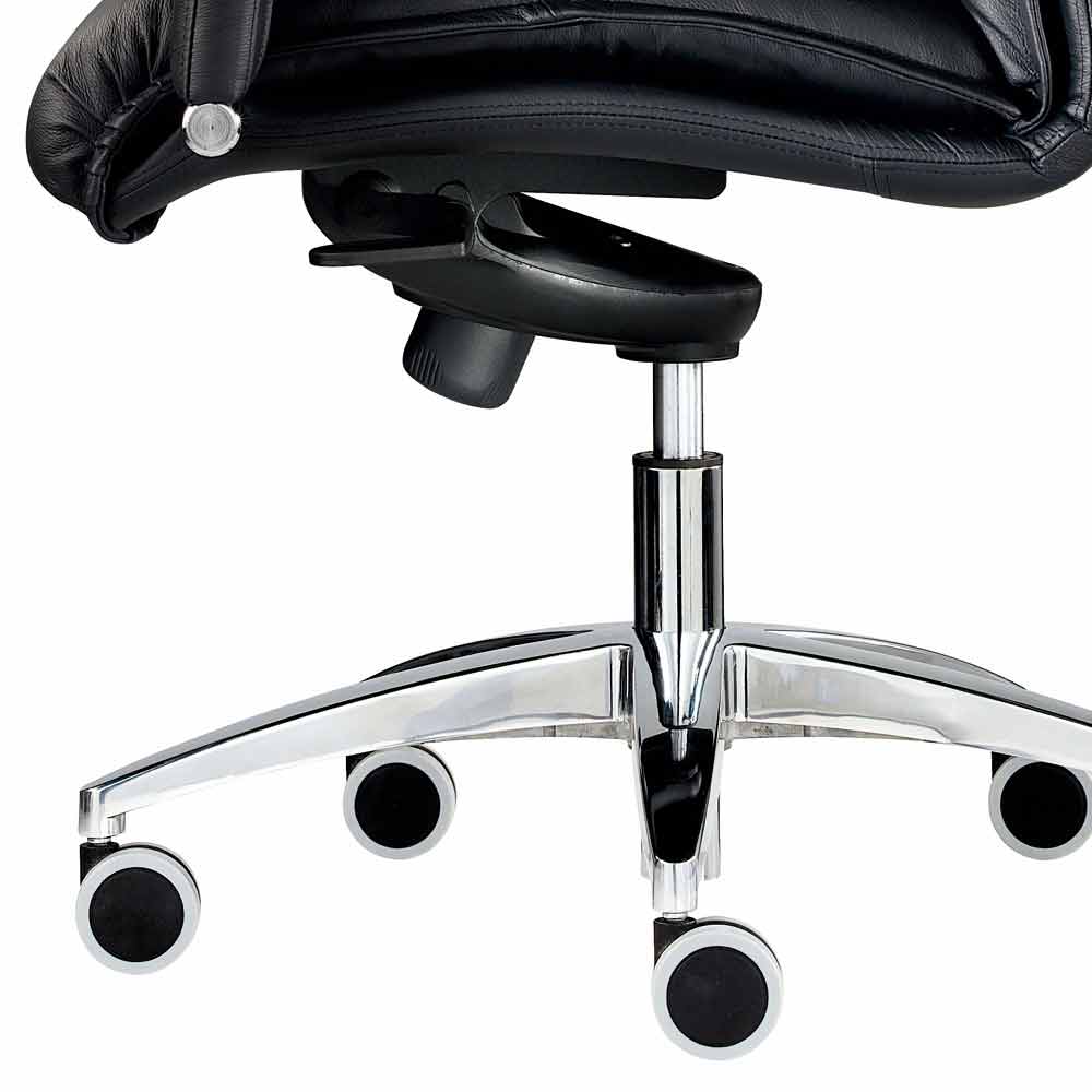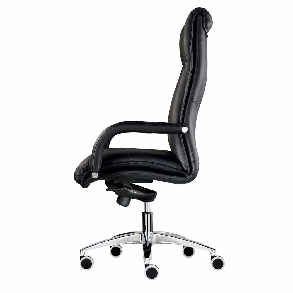 The Oliviero executive office chair is ideal to best represent these qualities; it comes with a swivel seat with gas lift, chromed metal frame with rubber wheels as standard and covered in eco-leather or leather. Available in different colors: