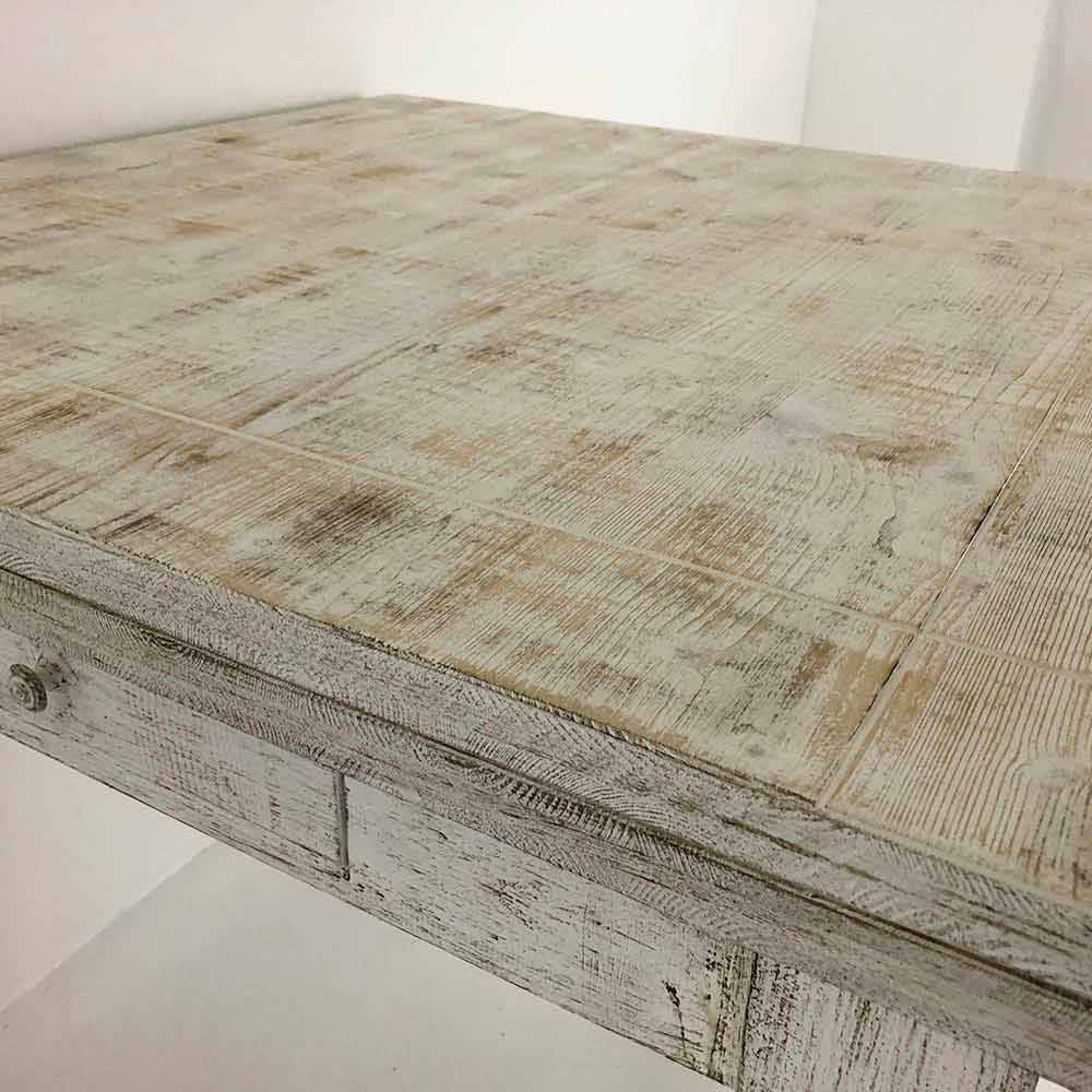 Dining tablehandcrafted inItaly with solid fir wood structure complete with practical side drawer and top and extension in triple crossed layer of 27 mm specially designed to avoid cracks that wood, being a living material, could create over time.