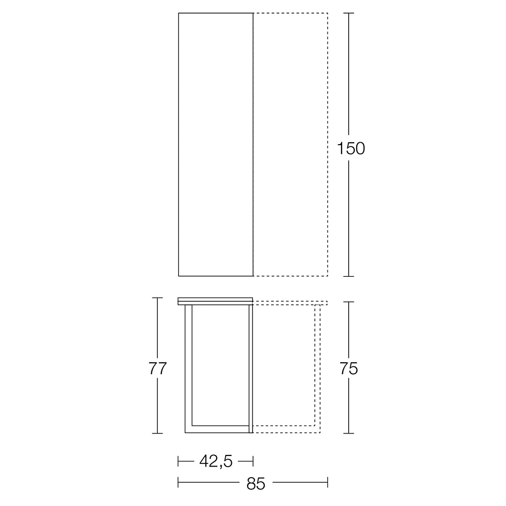 L 150 XP 42.5/85 XH 77 cm.