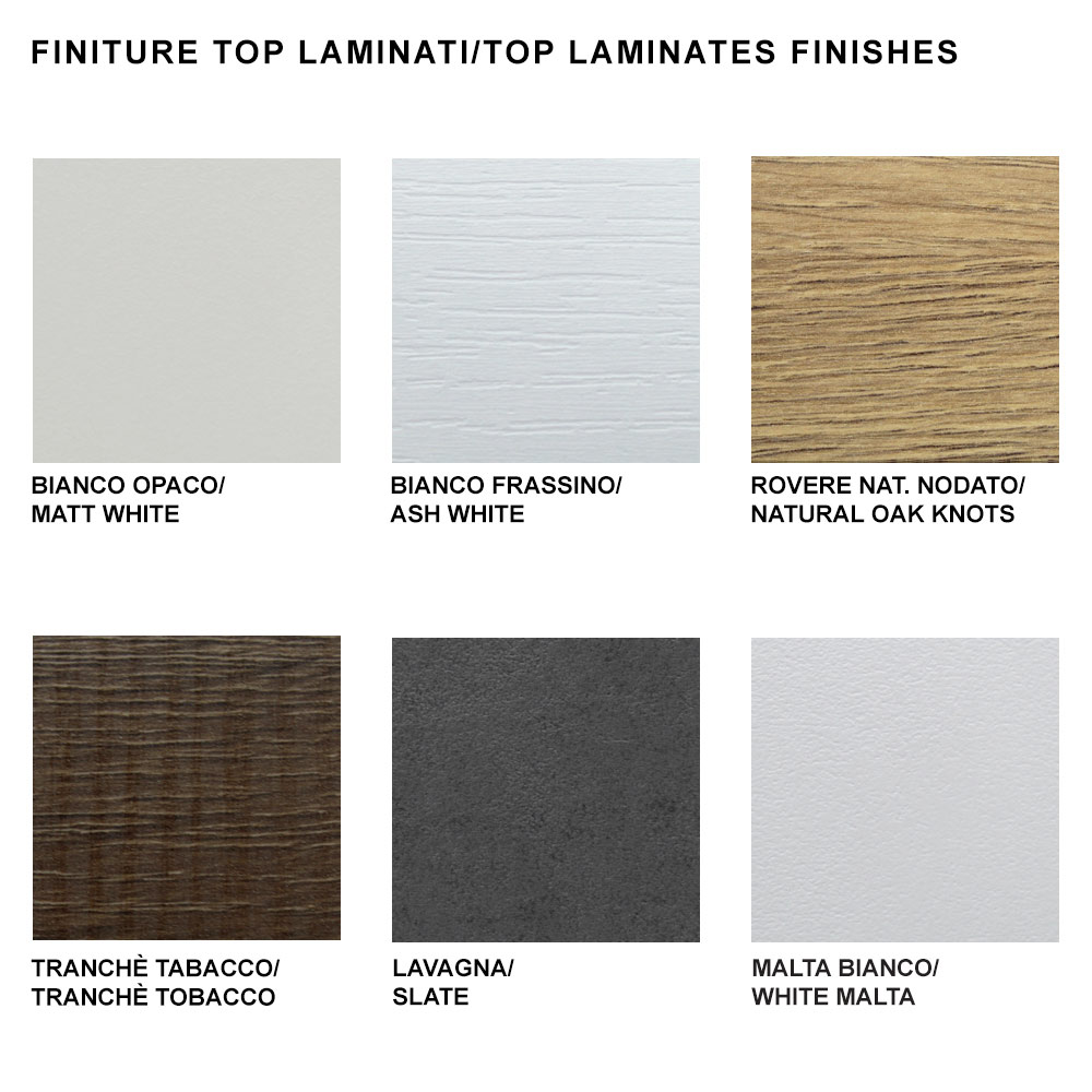 white, dove-gray or black lacquered steel. Available in different sizes and finishes for the top: