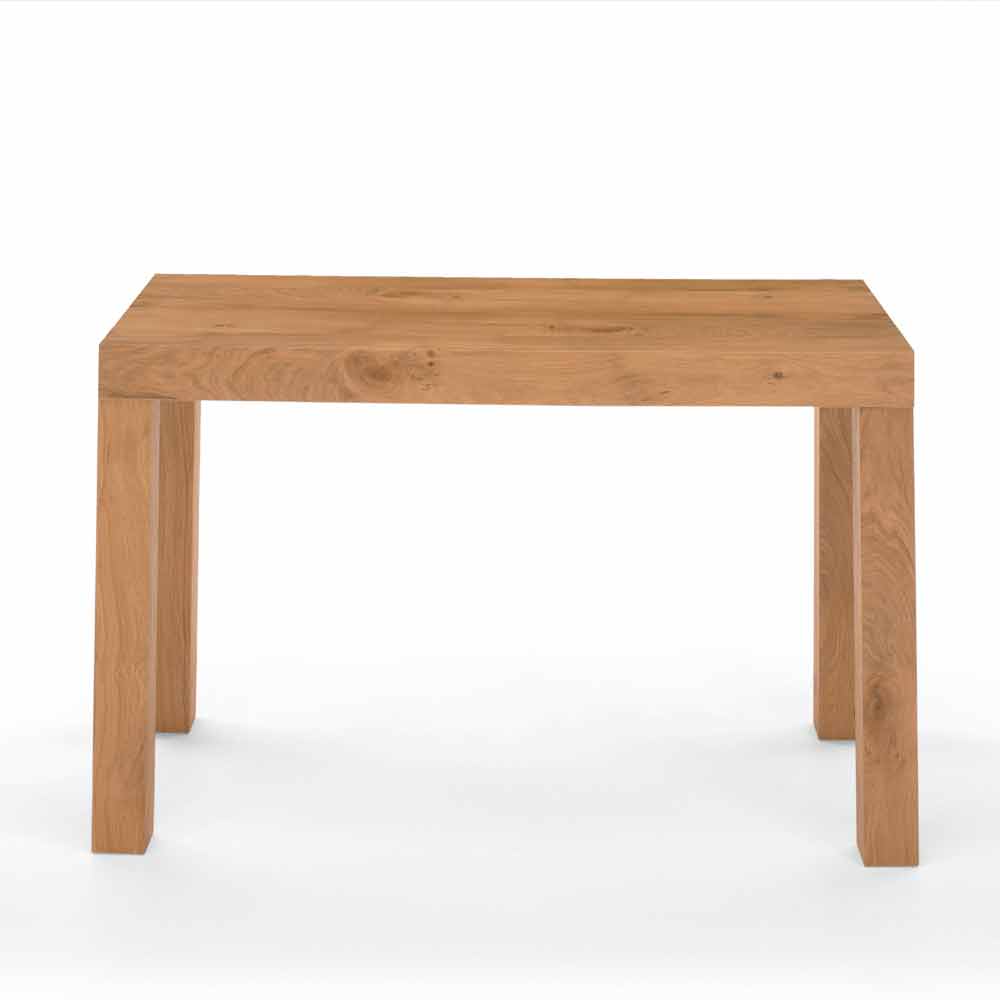Characterized by a top in knotty oak veneered wood (8cm thick) and a base in knotted oak veneer.
