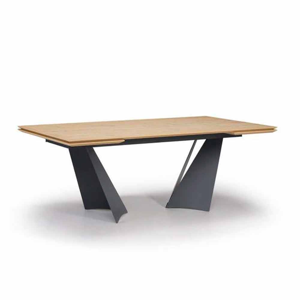 Extendable dining table in veneered wood and metal, luxury item Made in Italy.