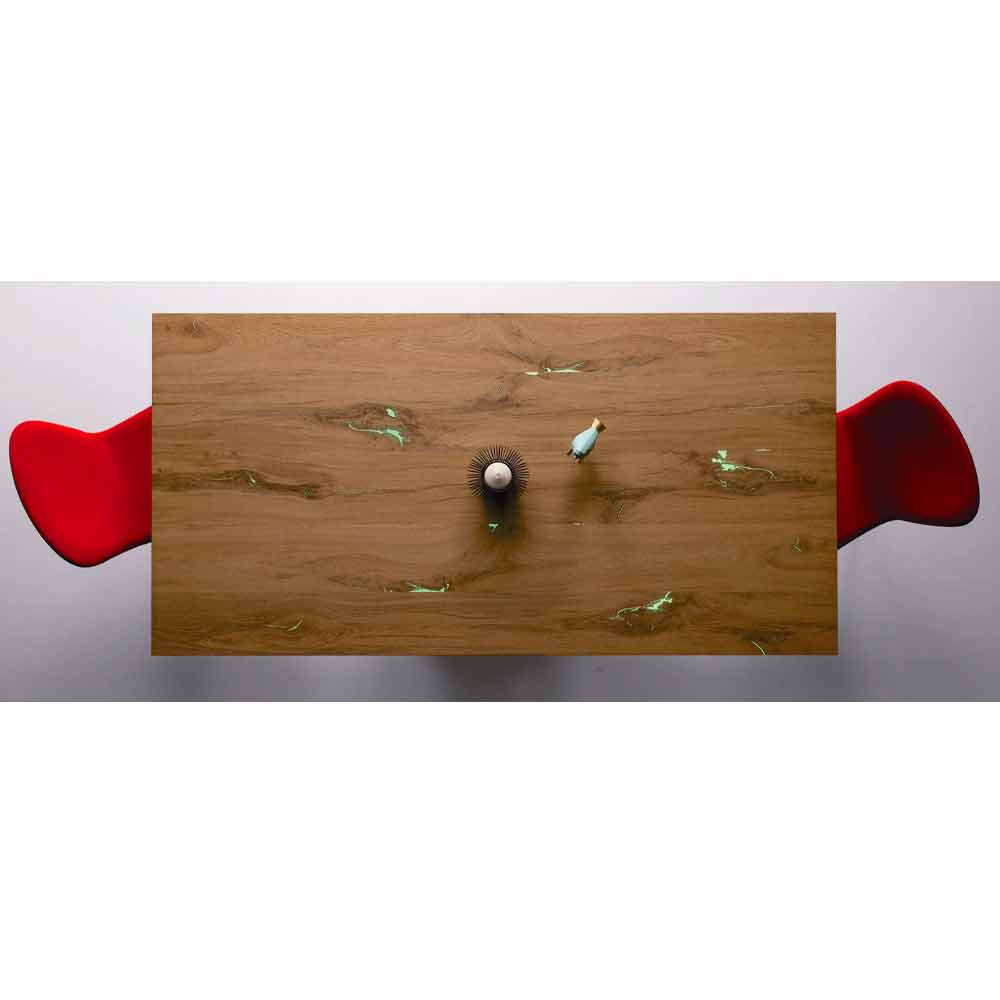 This Made in Italydining table is characterized by an innovative and elegant design thanks to the combination of materials and finishes used which makes it an ideal product for environments with a modern and refined style. The peculiarity of the table is undoubtedly given by the unusual structure of the two painted metal legs that do not rest entirely on the ground but only on two points, thus increasing the charm of the product. Due to its shape, the base seems light and slender but in reality it proves to be sturdy and stable, managing to support the weight of the top made of 2.5 cm thick veneered wood which, thanks to the presence of 2 removable 47 cm extensions, can reach a length of 294 cm allowing it to accommodate up to 14 people for lunches and dinners with friends.