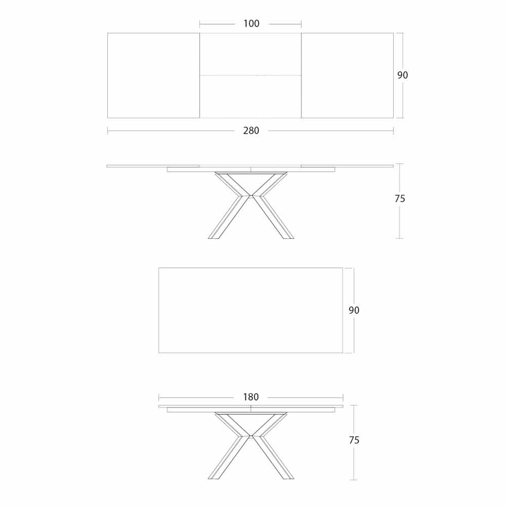 Dining table extendable to 280 cm with laminam ceramic top made in Italy.