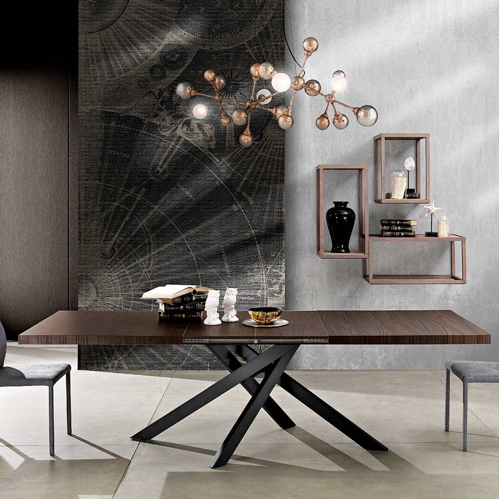 Dionigi is an extendable table realized in Italy with a metal glazed base and a folding boxed melamine surface (thickness 55mm).