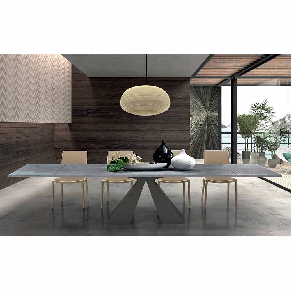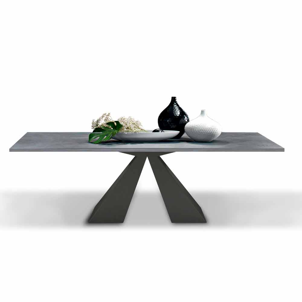 Dining table made in Italy with HPL laminate top (40 mm thick) and dove gray lacquered steel base. A piece of furniture with an imposing and massive style that conquers its space in dining rooms or modern kitchens where it captures every attention thanks to its strong contemporary personality . Its peculiarity is the extendable top that can reach a length of 300 cm (2 external extensions) making it the perfect idea for those who love to organize lunches and dinners in company and require a solution that is as functional as it is modern that can create a wonderful harmony with the surrounding furniture. Furthermore, the hpl top, a high pressure laminate extremely resistant to chemical agents, abrasions and scratches, allows to offer a solid and robust surface capable of maintaining its aesthetic characteristics unaltered for an optimal result that lasts over time.