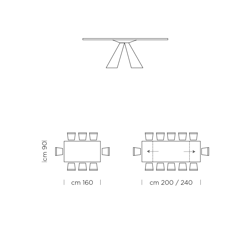 L 160/240 x P 90 x H 75 cm 12 seats (2 extensions of 40 cm);