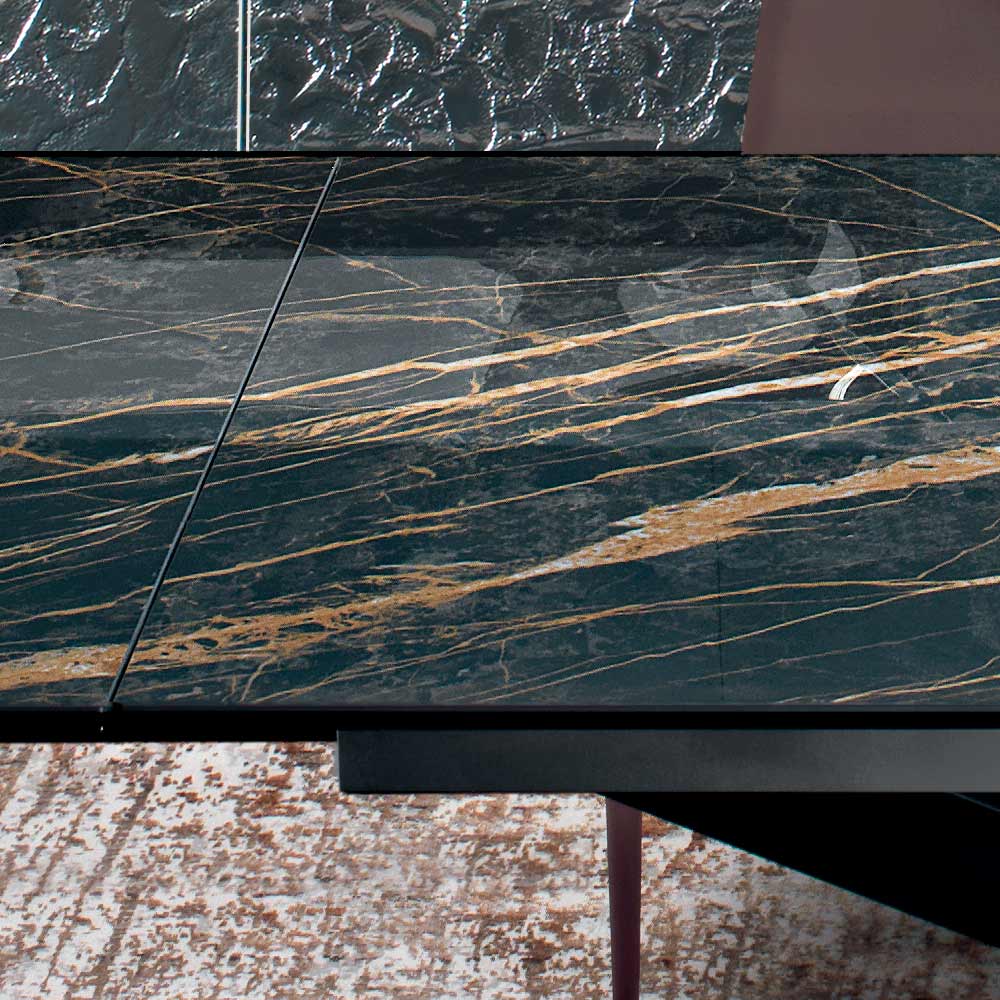 Extendable dining table with top in hyper-marble laminam Made in Italy.
