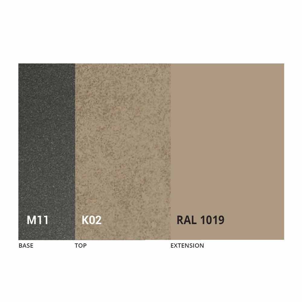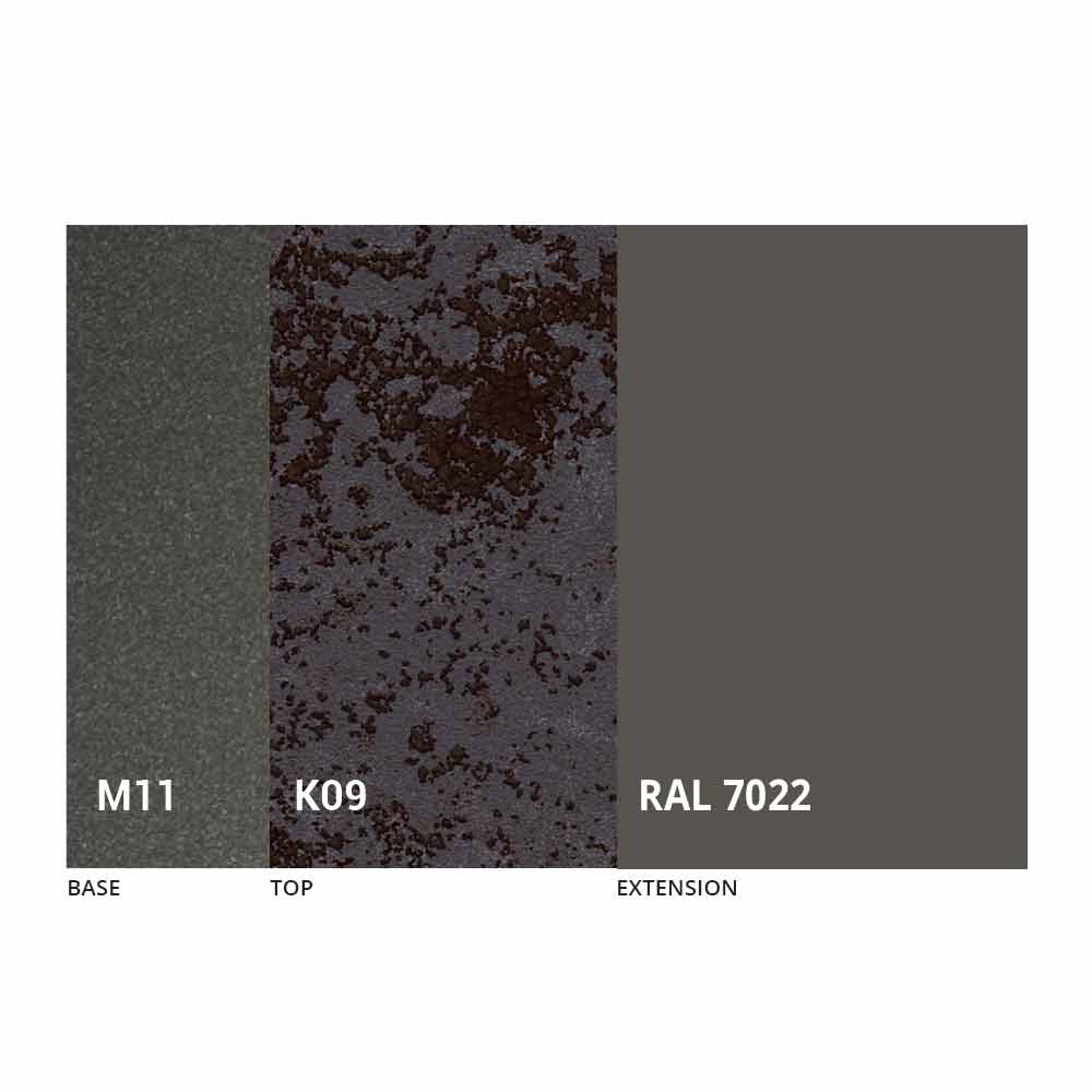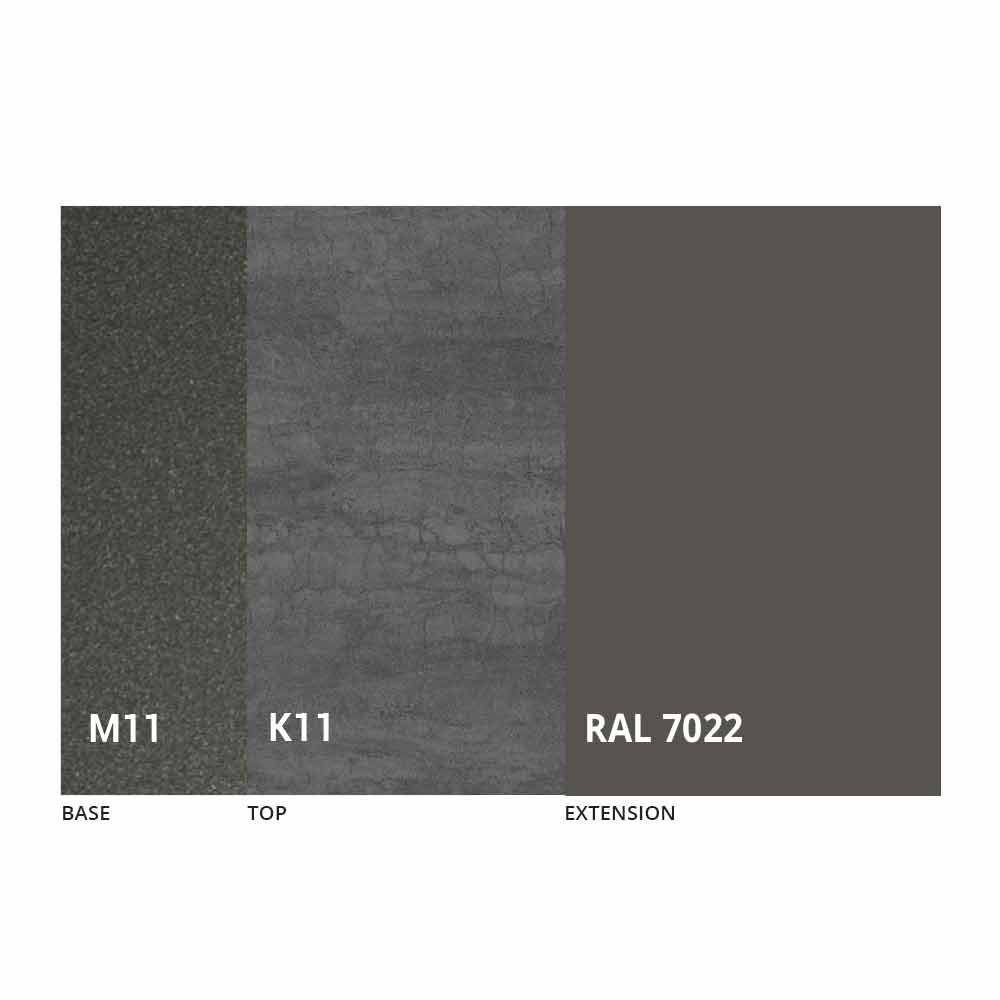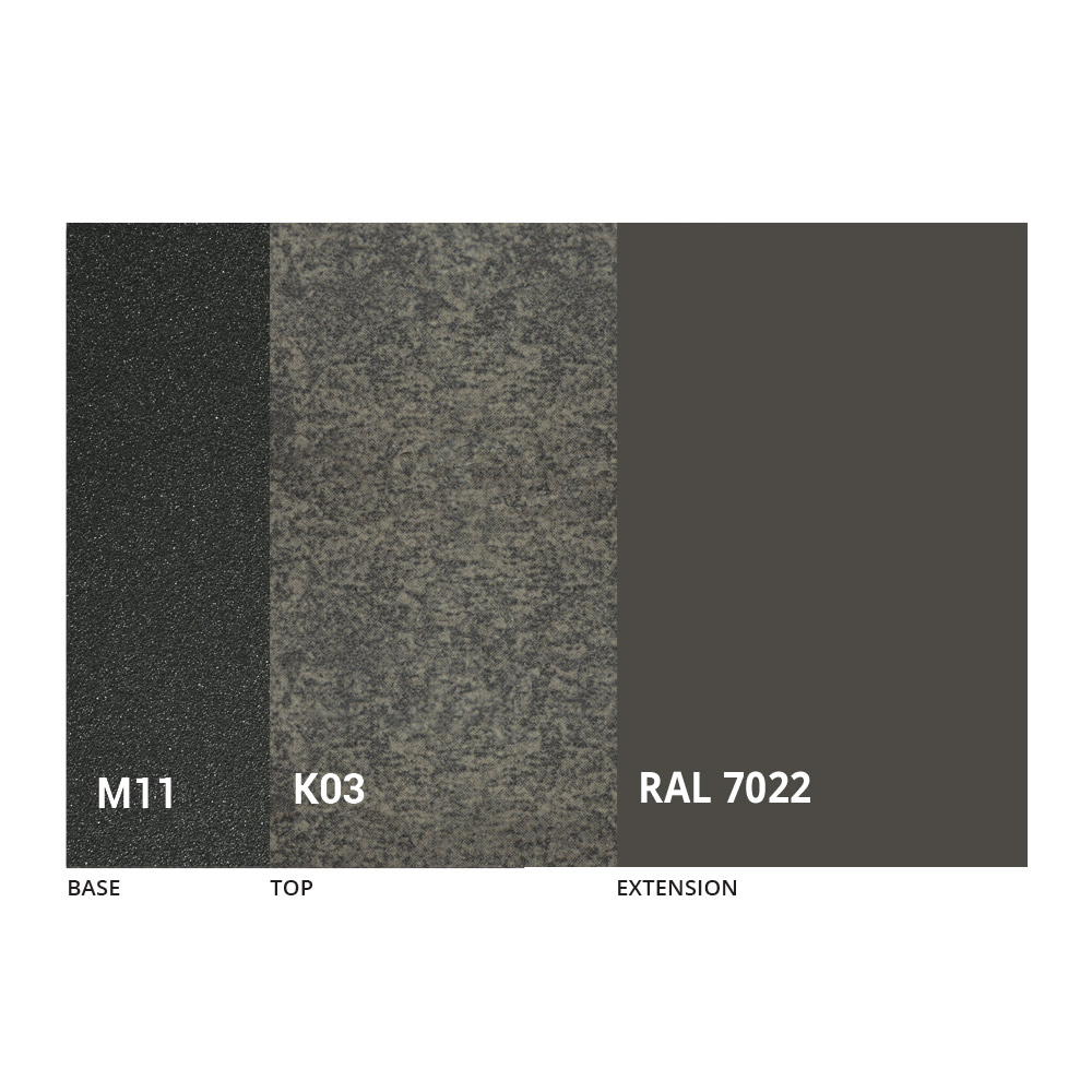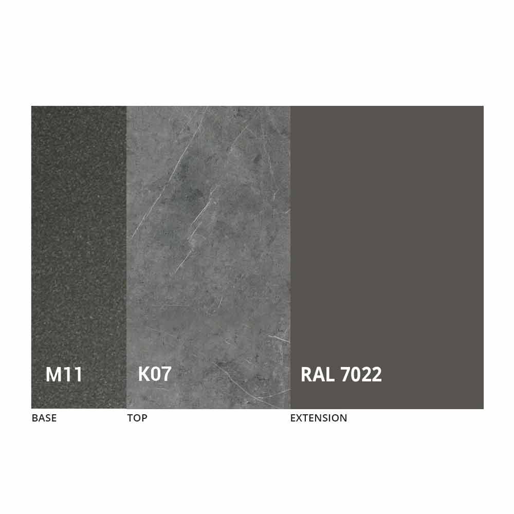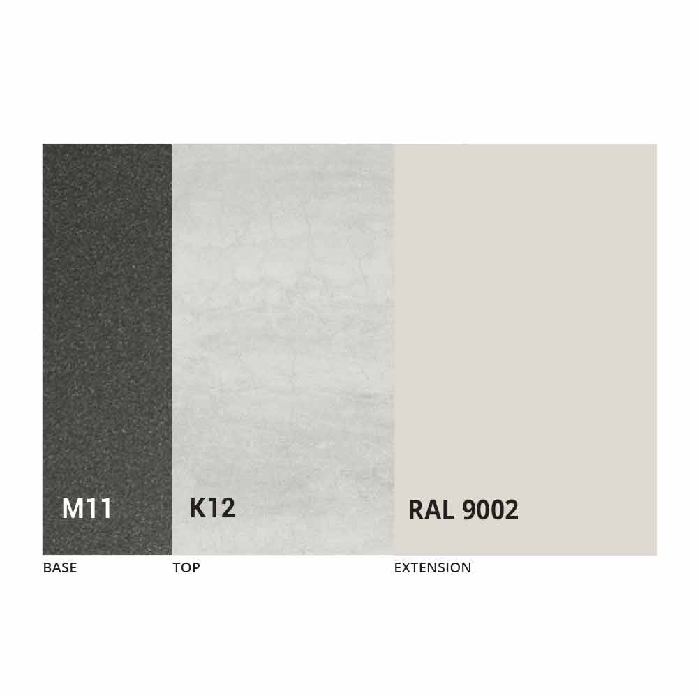 The top, the extension and the base of the table can be customized with different sample finishes. For information, contact us using the "
