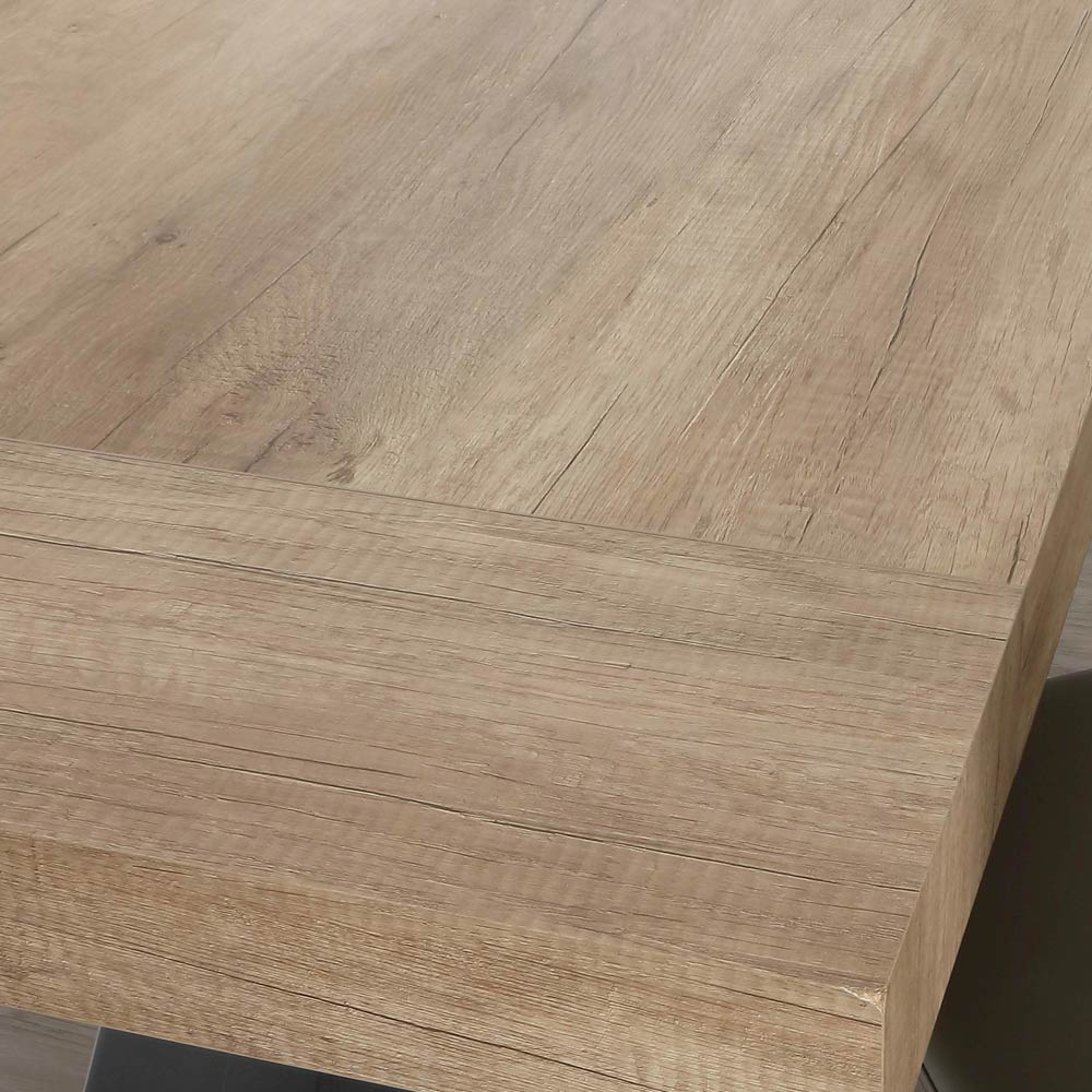 Dining table with extendable top to 260 cm in melamine wood and metal base.