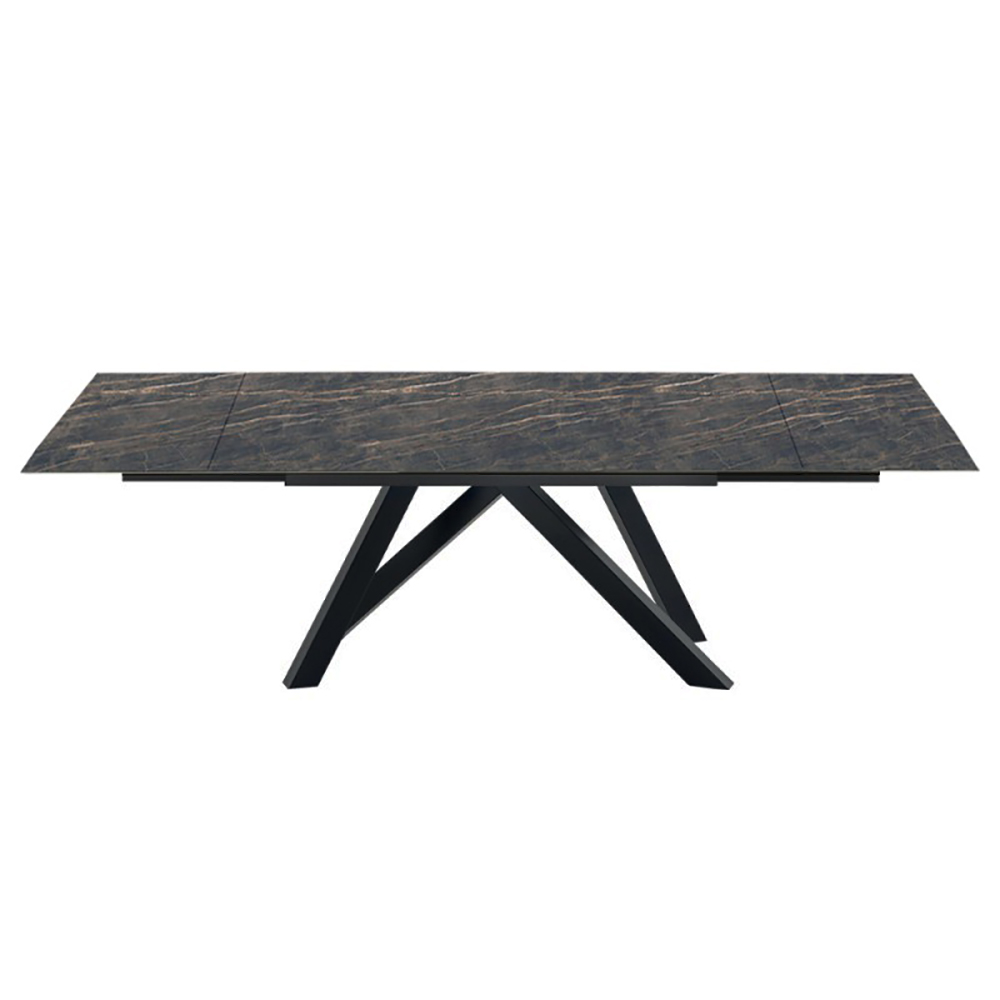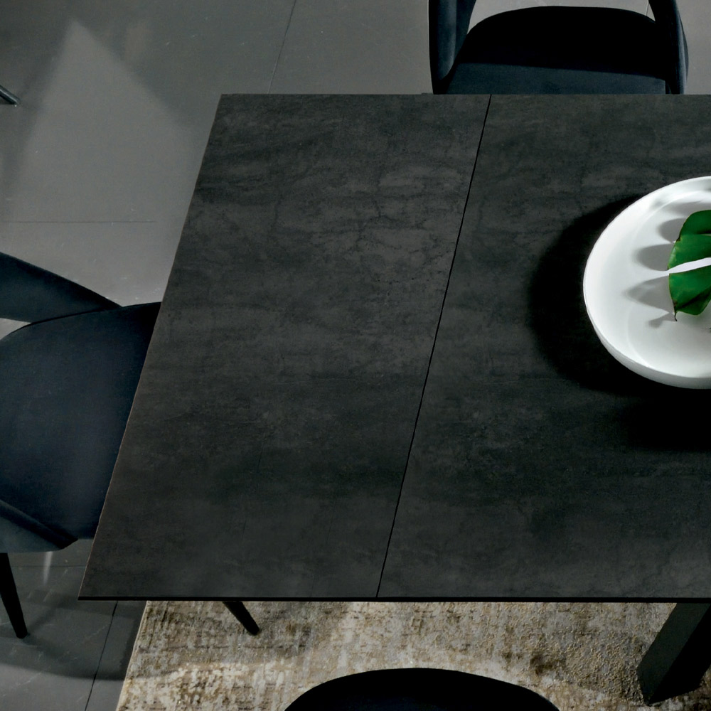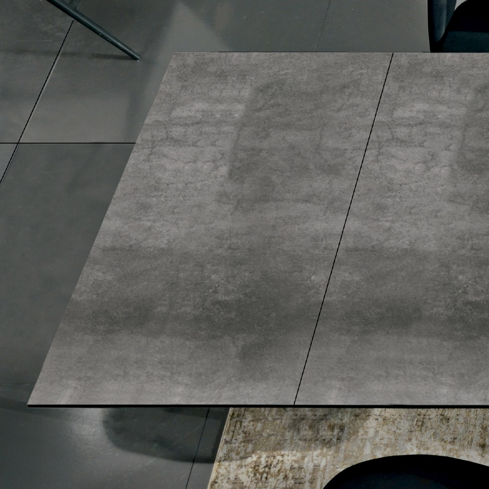 Dining table with extendable top in laminam ceramic and steel base, fine Made in Italy item.