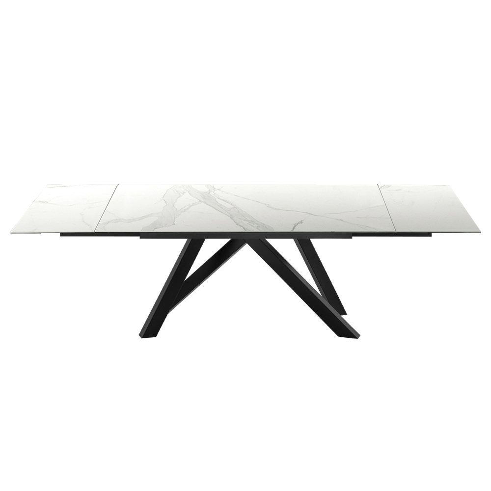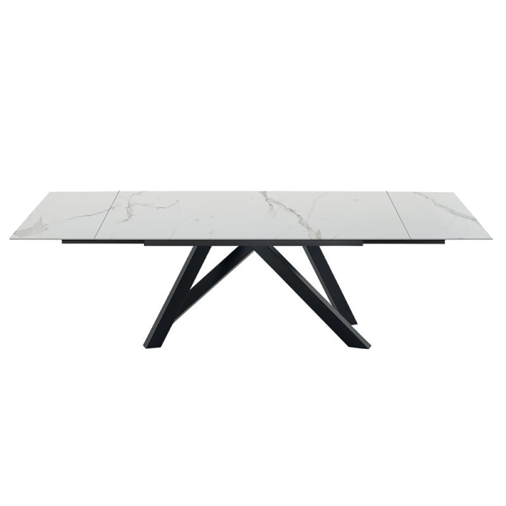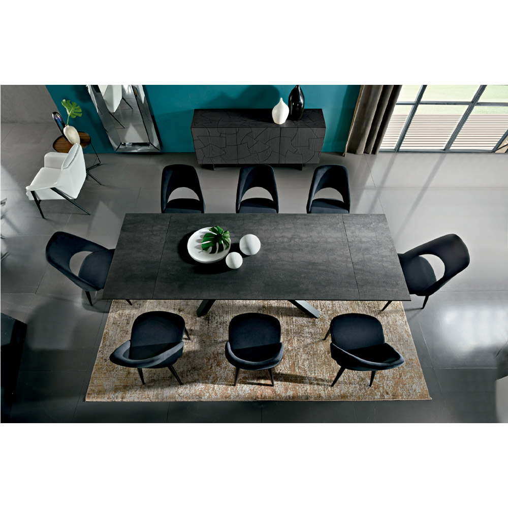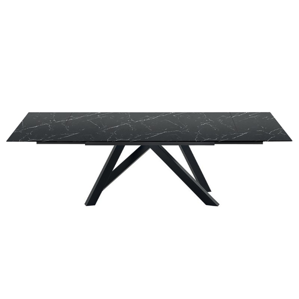 Dining table with extendable top in laminam ceramic and steel base, fine Made in Italy item.