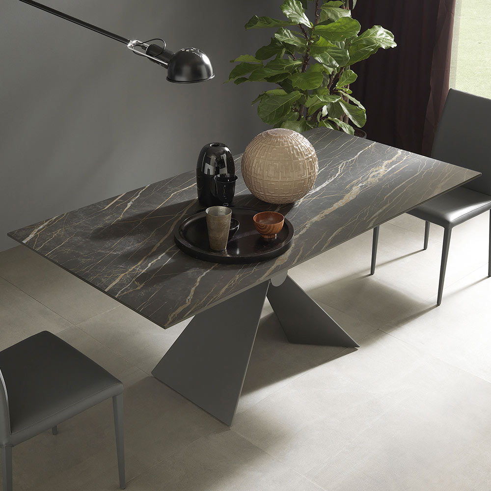 Modern extendable dining table in ceramic and metal Made in Italy.