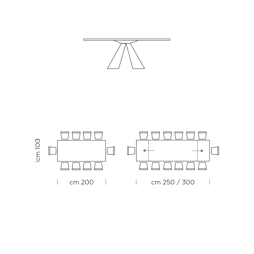 - L 200/300 x P 100 x H 75 cm 14 seats (2 extensions of 50 cm).