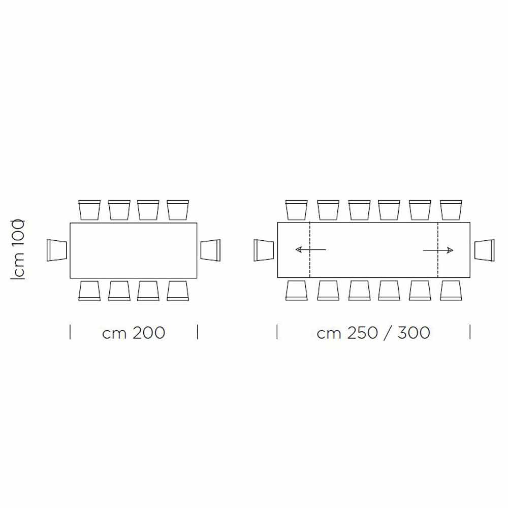 L 200/300 x P 100 x H 76 cm 14 seats (2 extensions of 50 cm).