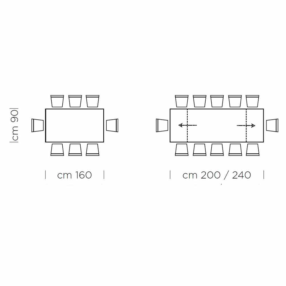 Available sizes:- L 160/240 x P 90 x H 75 cm 12 seats (2 extensions of 40 cm);