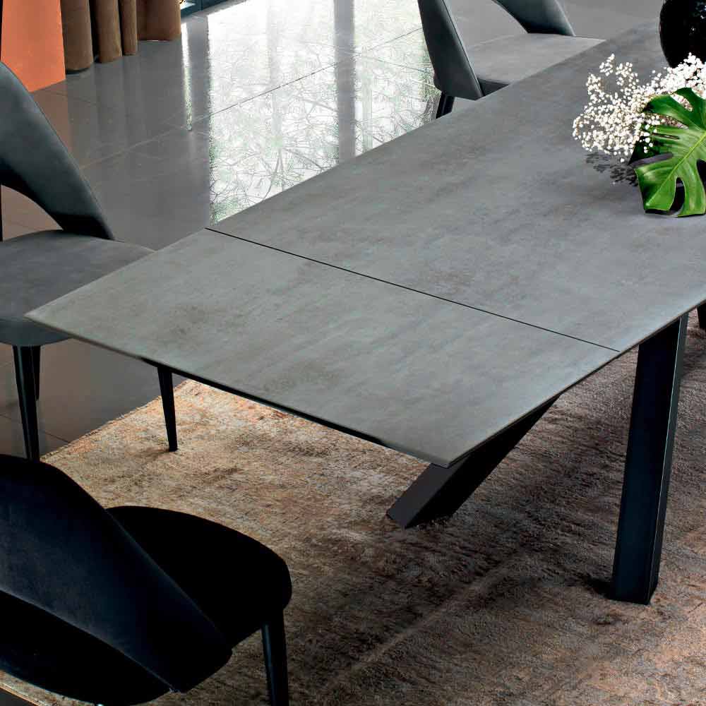 Extendable dining table with hpl laminate top and steel base, high quality Made in Italy.