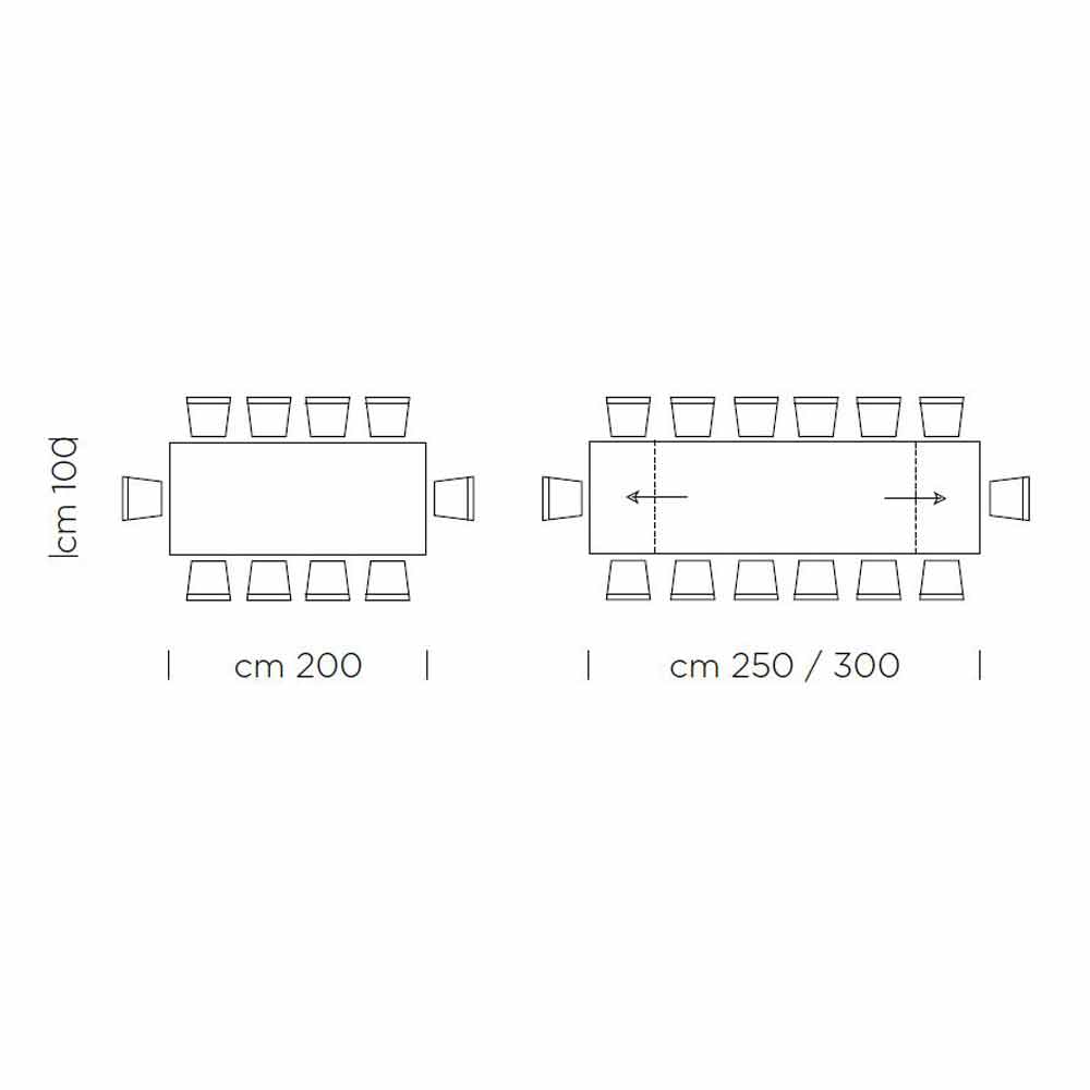 - L 200/300 x P 100 x H 75 cm 14 seats (2 extensions of 50 cm).