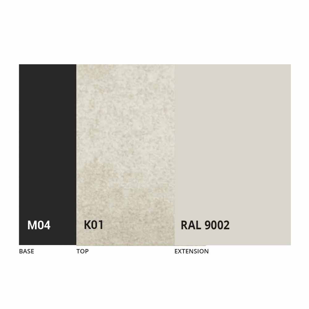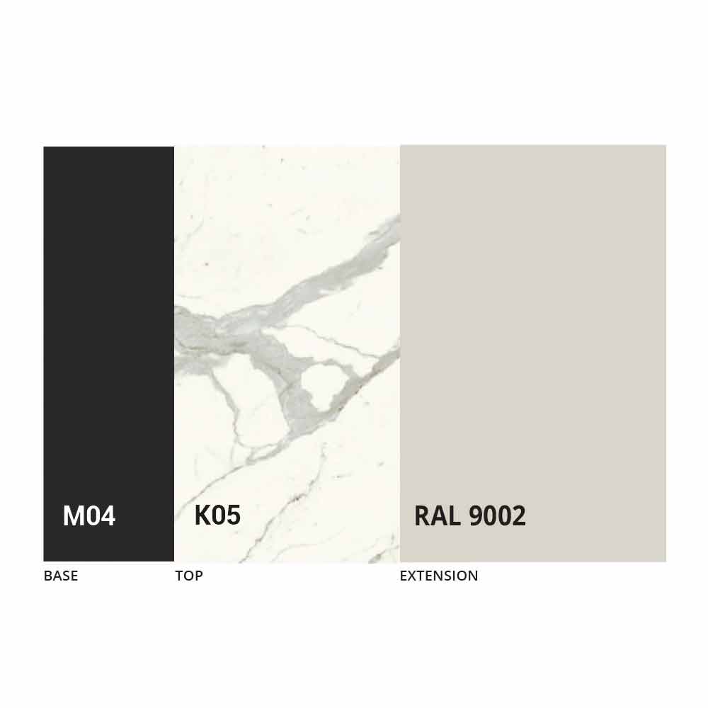 The top, the extension and the base of the table can be customized with different sample finishes. For information, contact us using the " Request Information " form.