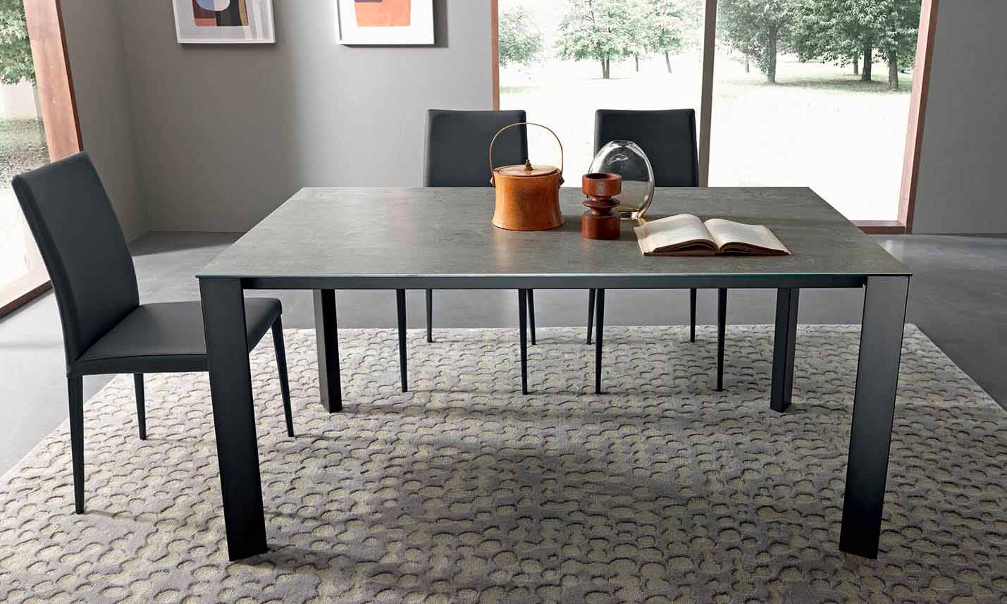 This extendable table has a highly contemporary design and is suitable for any living need, able to combine aesthetic taste with functionality and give a visual and tactile impact of great effect.