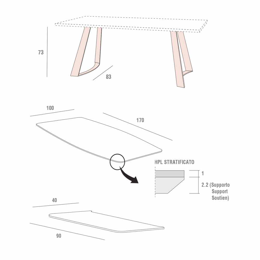 side extensions of 40 cm each, it will also be possible to extend the top up to a maximum length of 280 cm, thus giving life to a table that can accommodate a greater number of guests, proving to be the ideal solution for those who love to organize lunches and dinners in company.