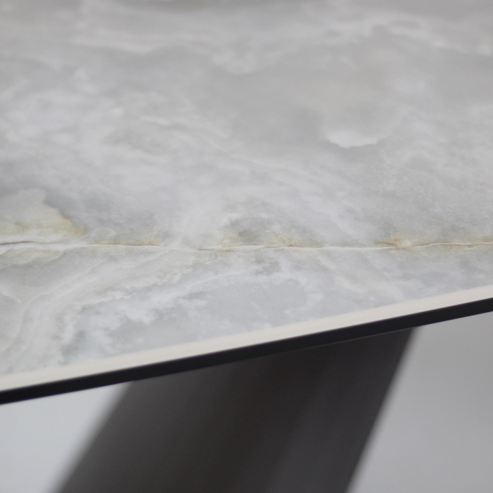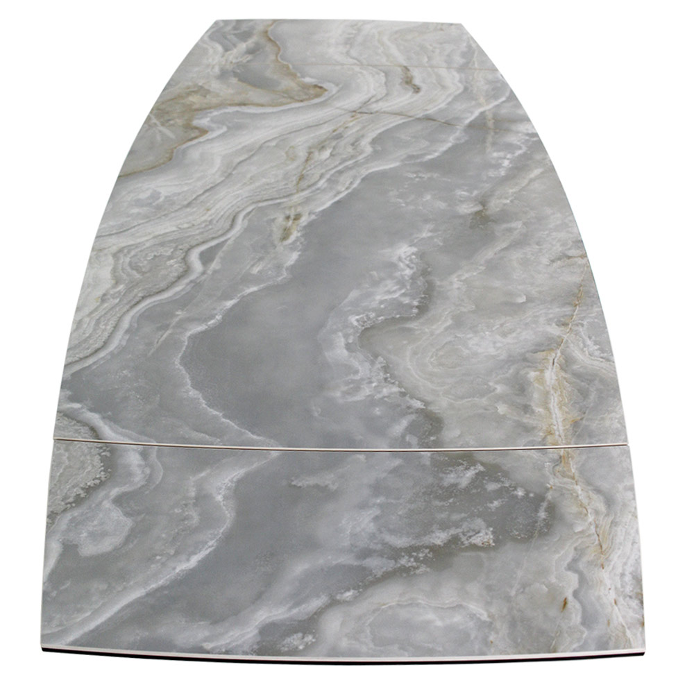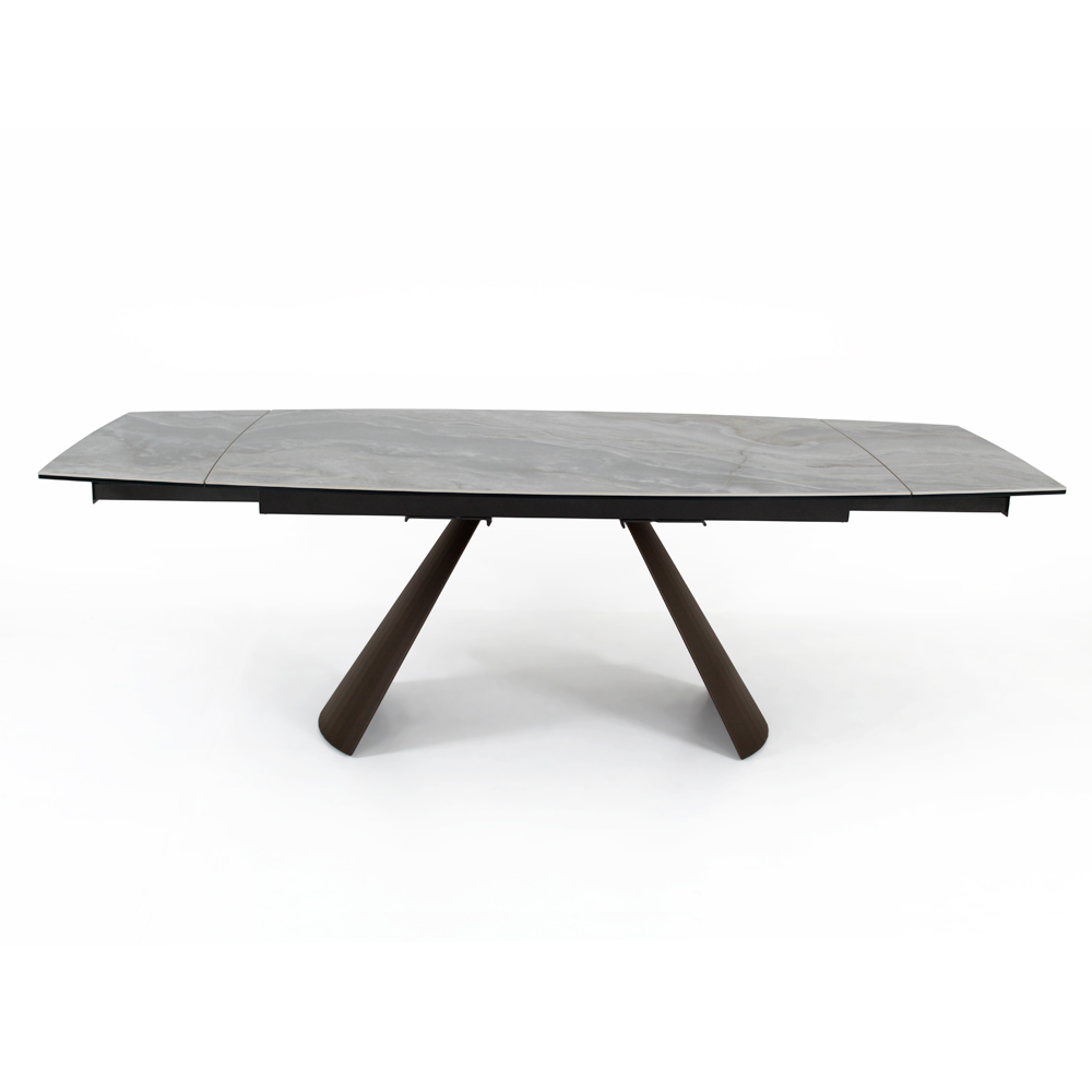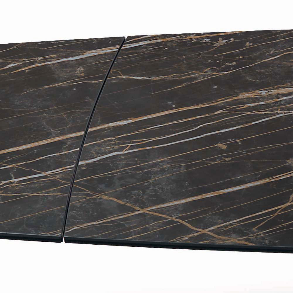Extendable barrel-shaped living room table with integrated extensions, with ceramic top, straight edge , lacquered steel base and adjustable feet. The choice of top quality materials and the attention in the creation of every single detail create a product of excellent quality Made in Italy . Thanks to the shape of the base and the available finishes, this table is the protagonist of any daily contract environment , becoming a perfect idea for all those who want to give the room an elegant, sumptuous and unique touch.