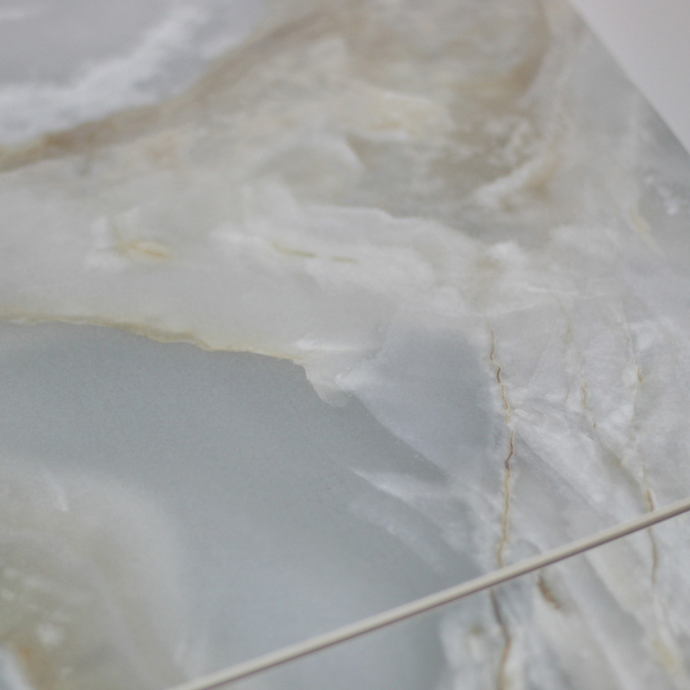 champagne base, shiny veined gold calacatta top (thickness 10 mm glass + 5 mm ceramic)