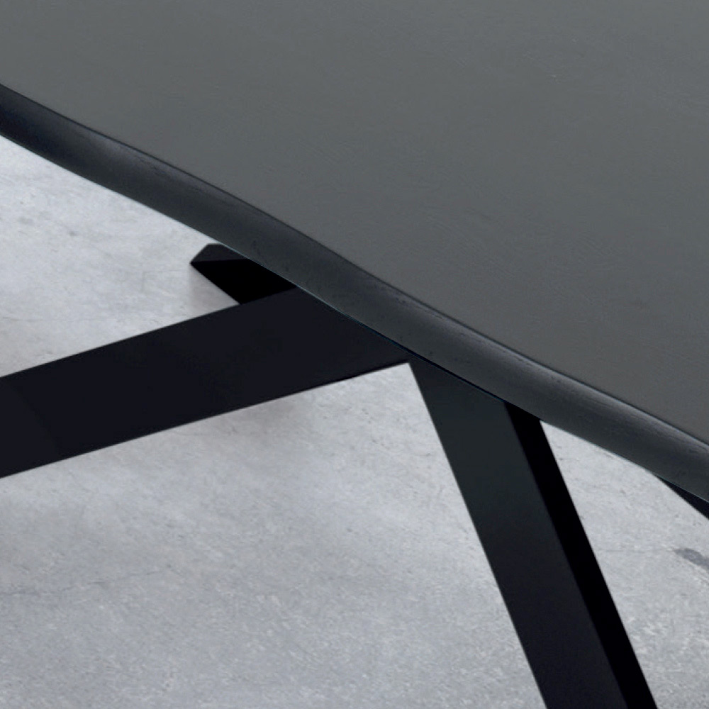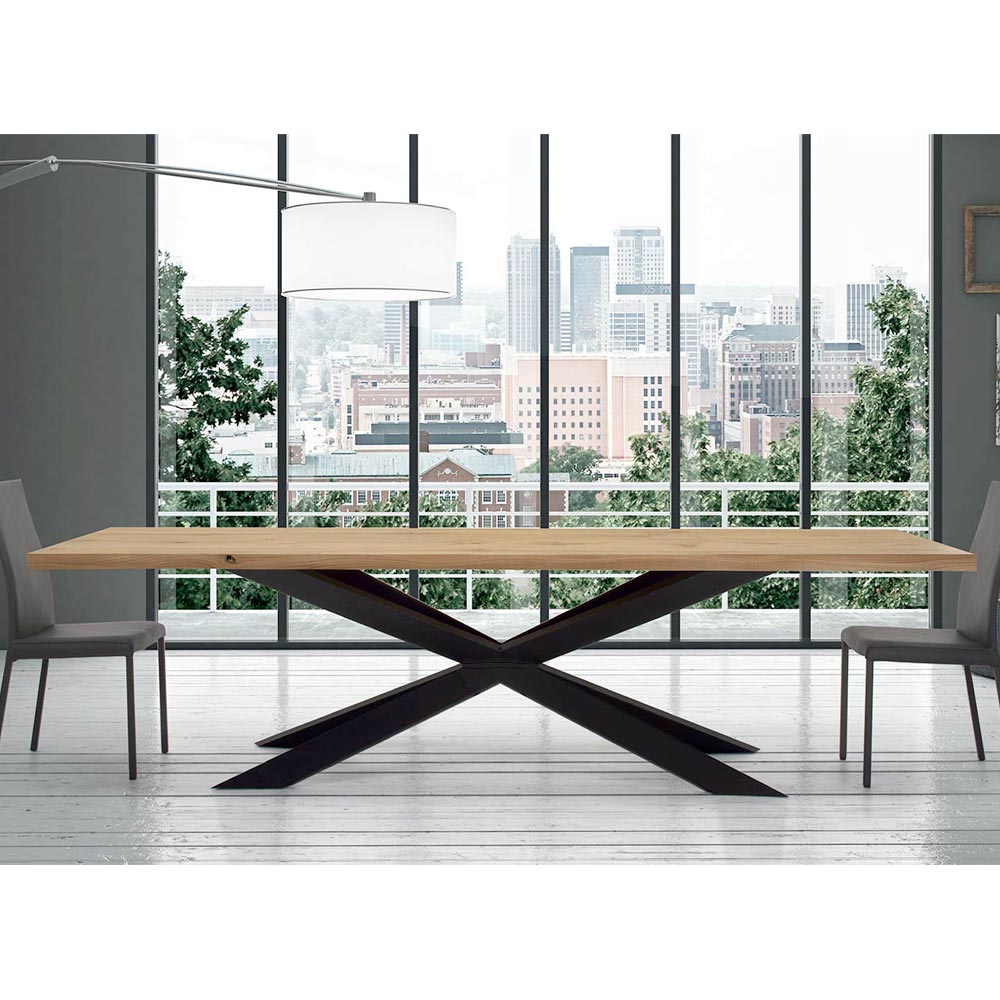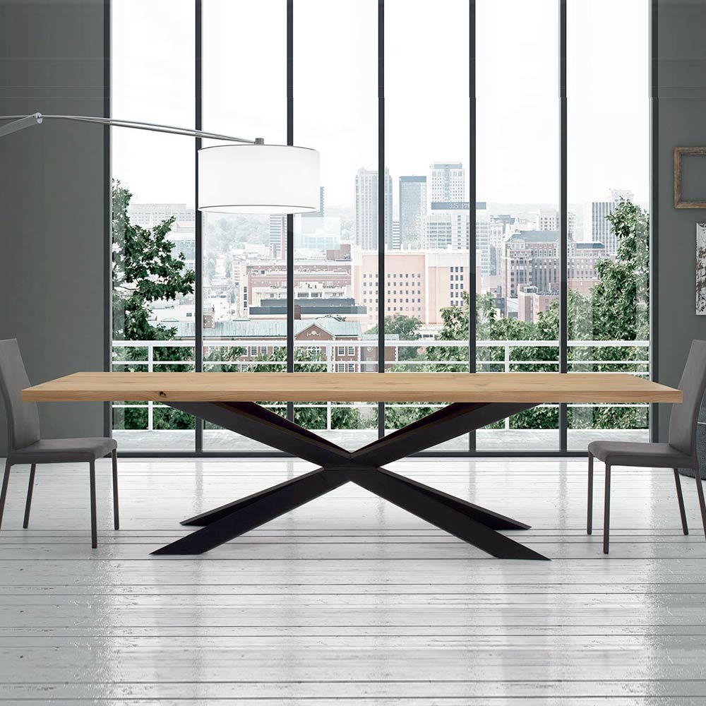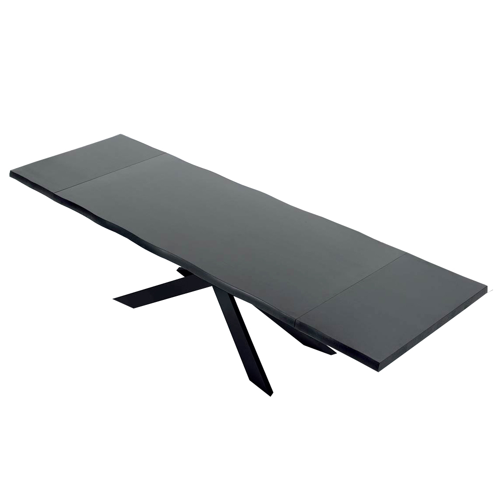 Extendable dining table up to 300 cm in veneered wood and black steel base, made in Italy.