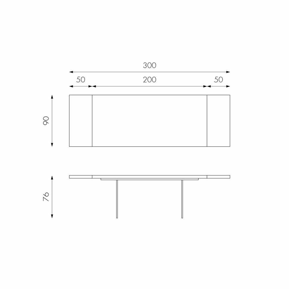 - L200 / 300x P100x H 76cm; No. 2 extensions of 50 cm each