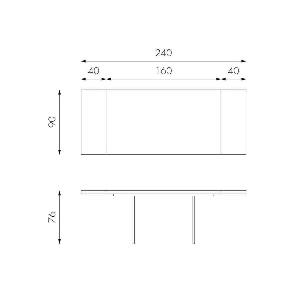 - L160 / 240x P 90x H 76cm; No. 2 extensions of 50 cm each