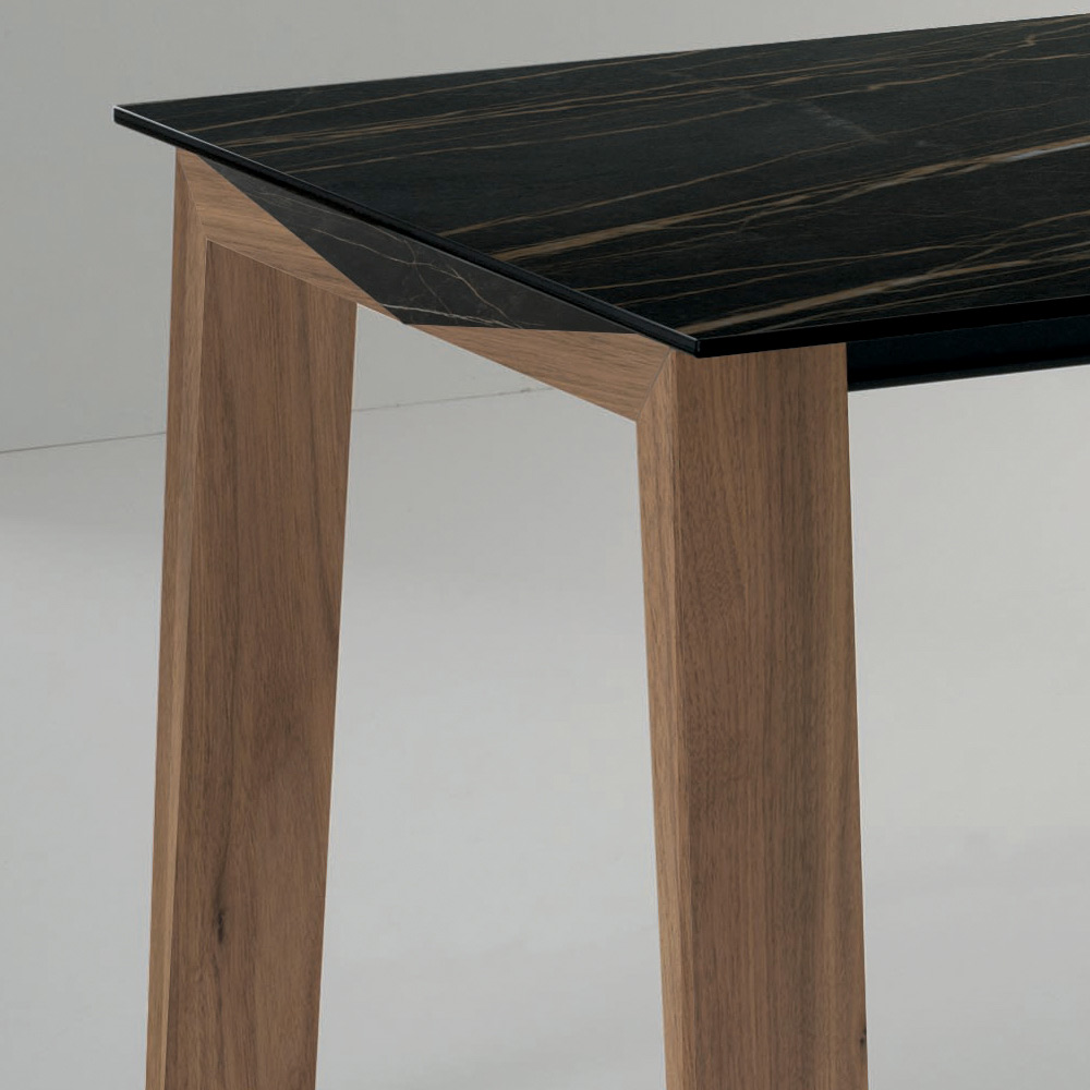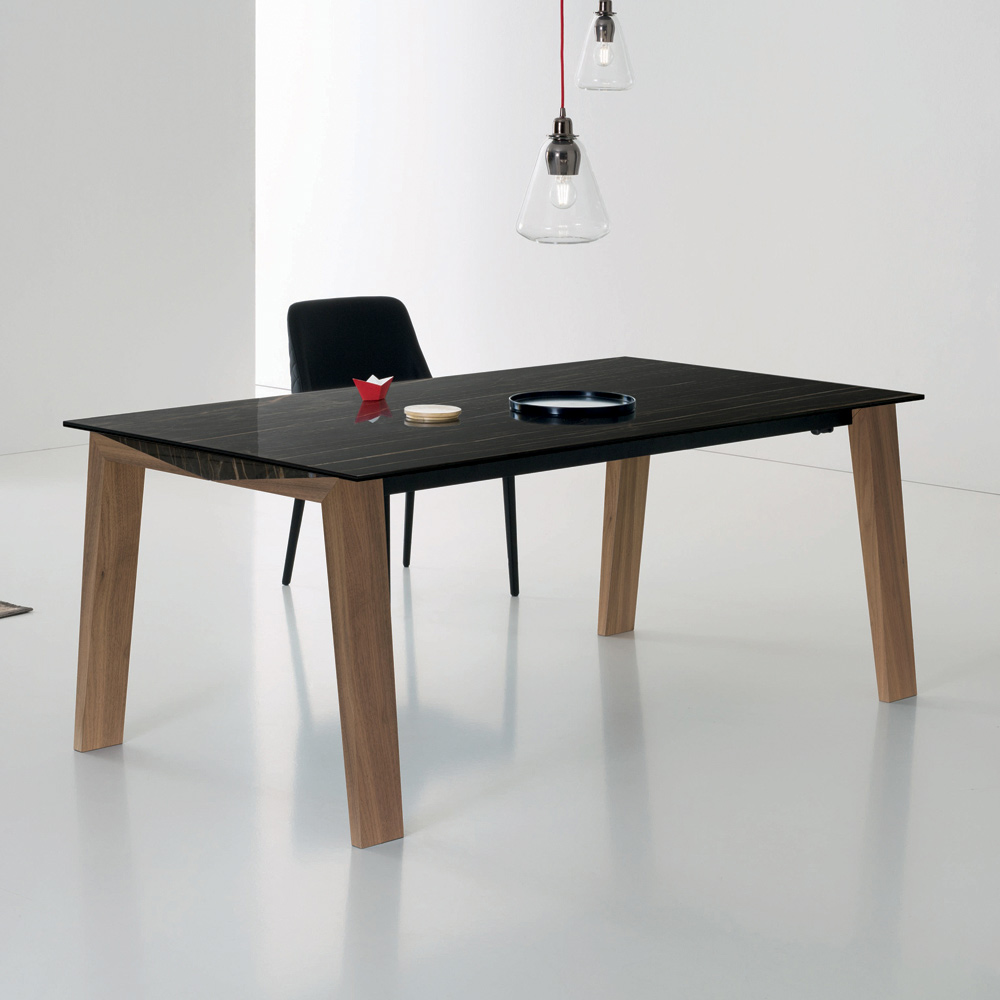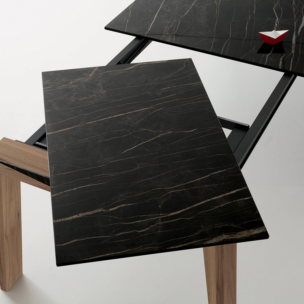 Extendable dining table in solid wood and glossy ceramic top, made in Italy.