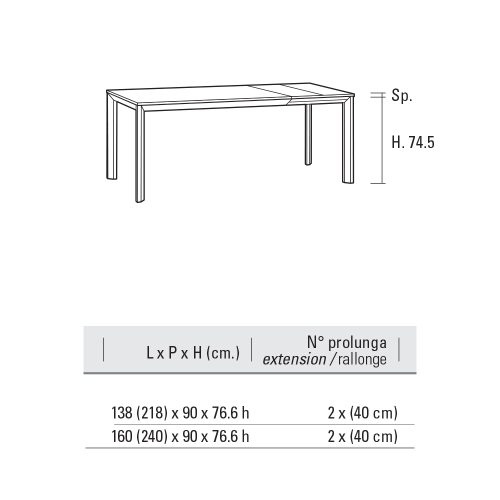 Available sizes:- L 138/218 x P 90 x H 76.5 cm;
