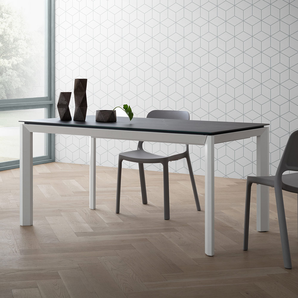 Extendable dining table up to 240 cm in laminam ceramic and aluminum Made in Italy.