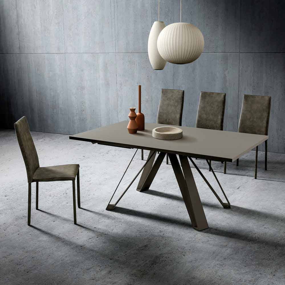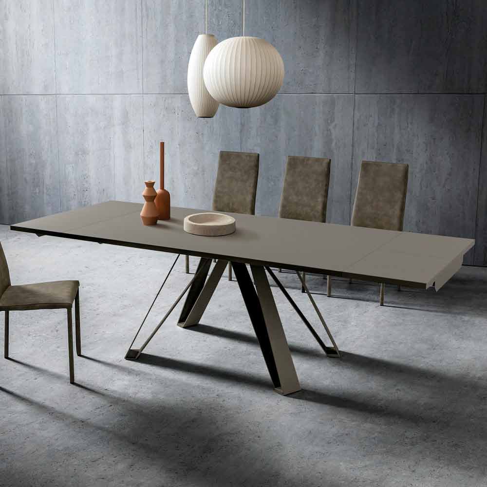 Extendable kitchen table in fenix and painted metal Made in Italy, luxury.