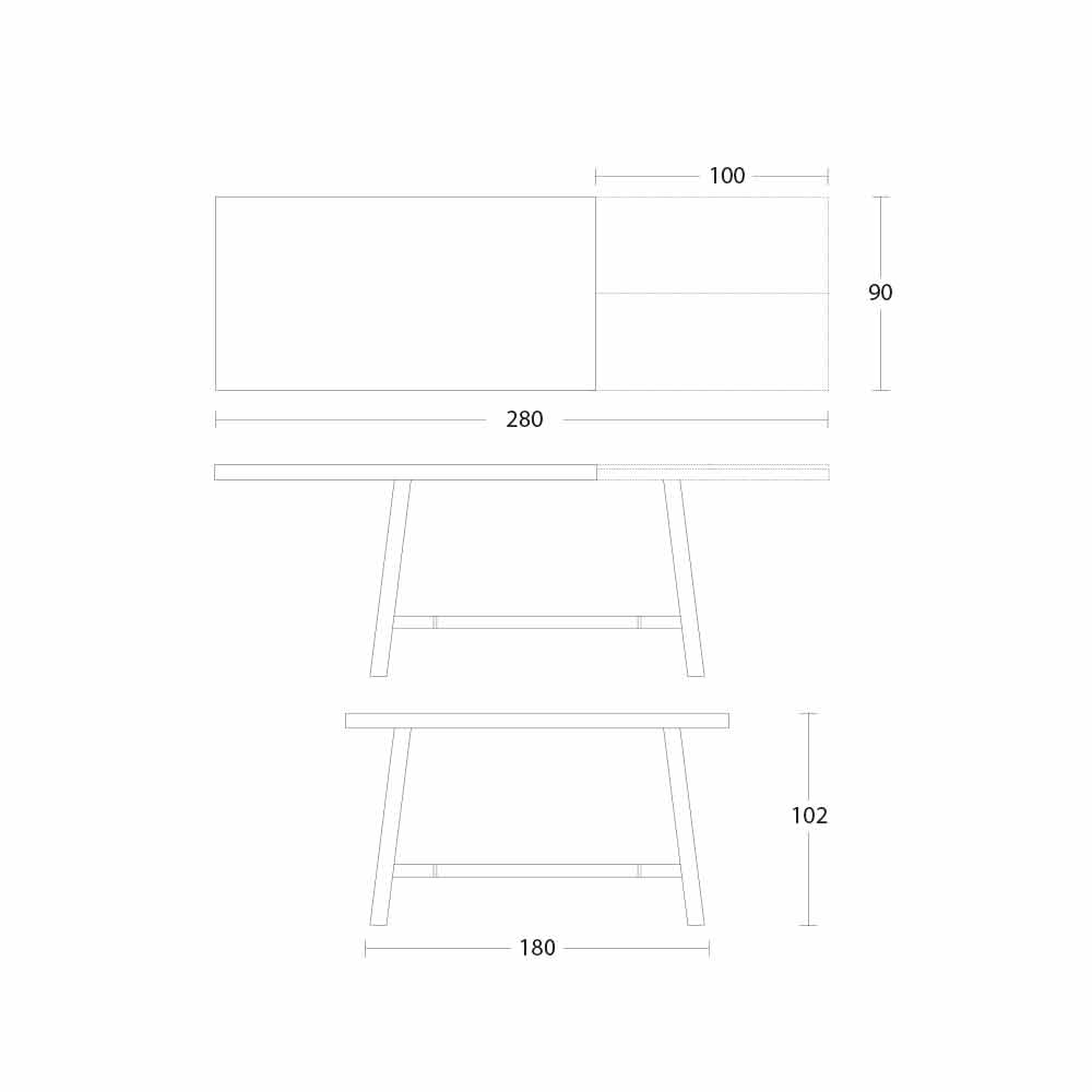 - W 180-280 x W 90 x H 102cm