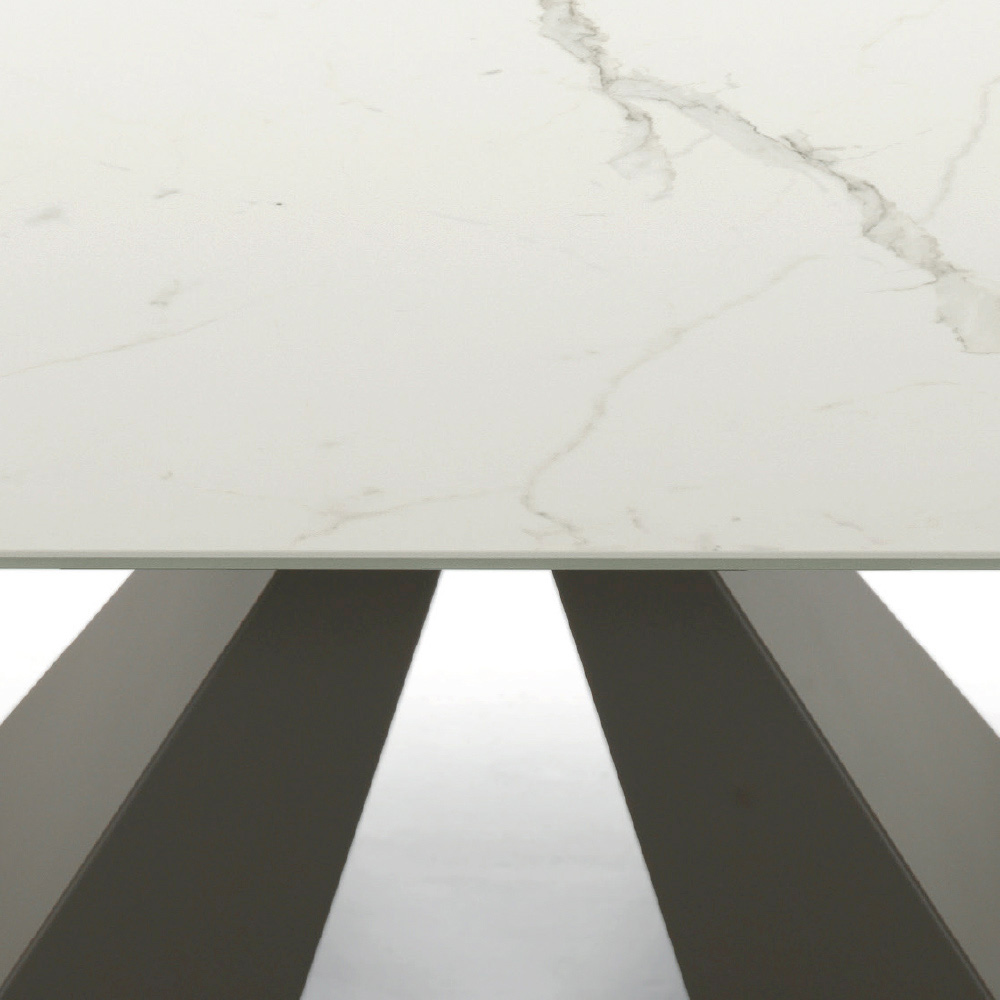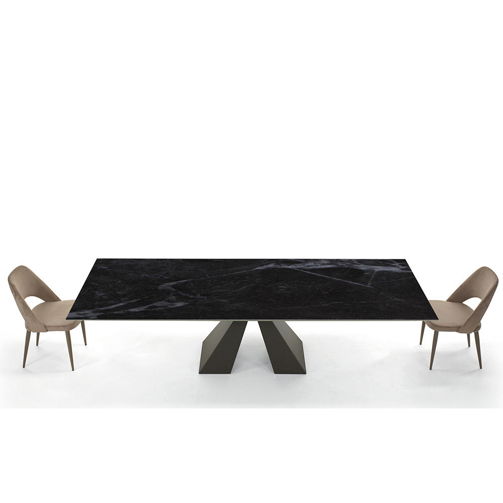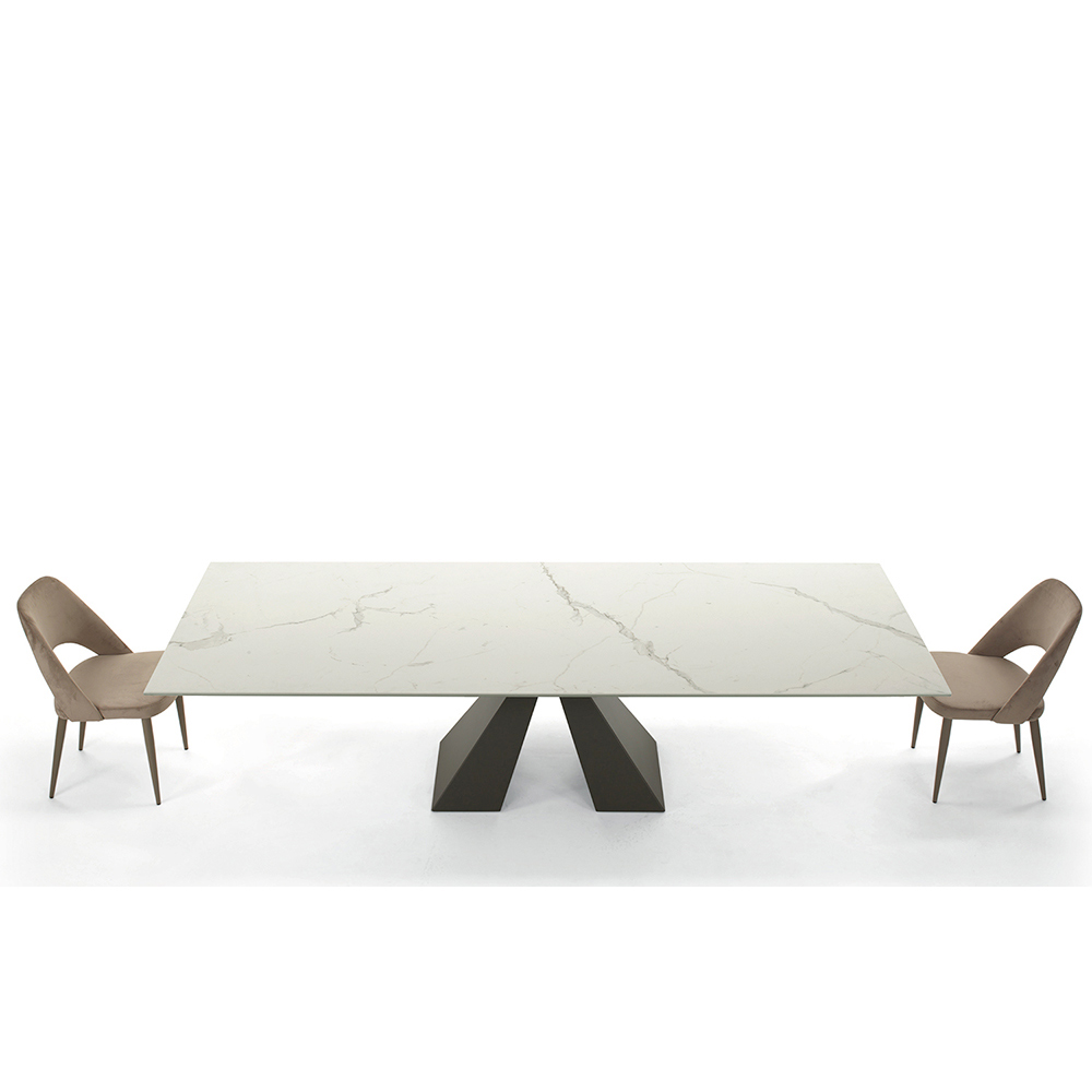 Dining table extendable up to 300 cm in modern design in hypermarmo and steel made in Italy.