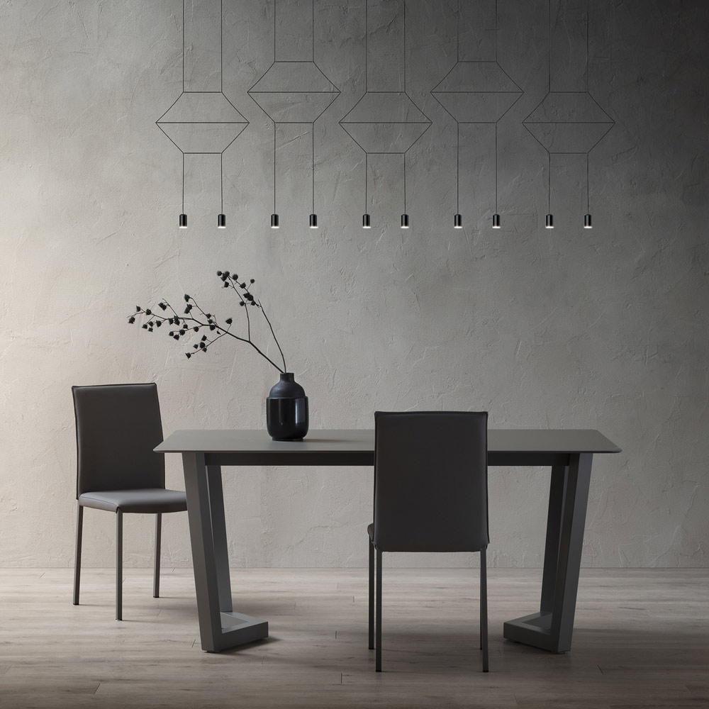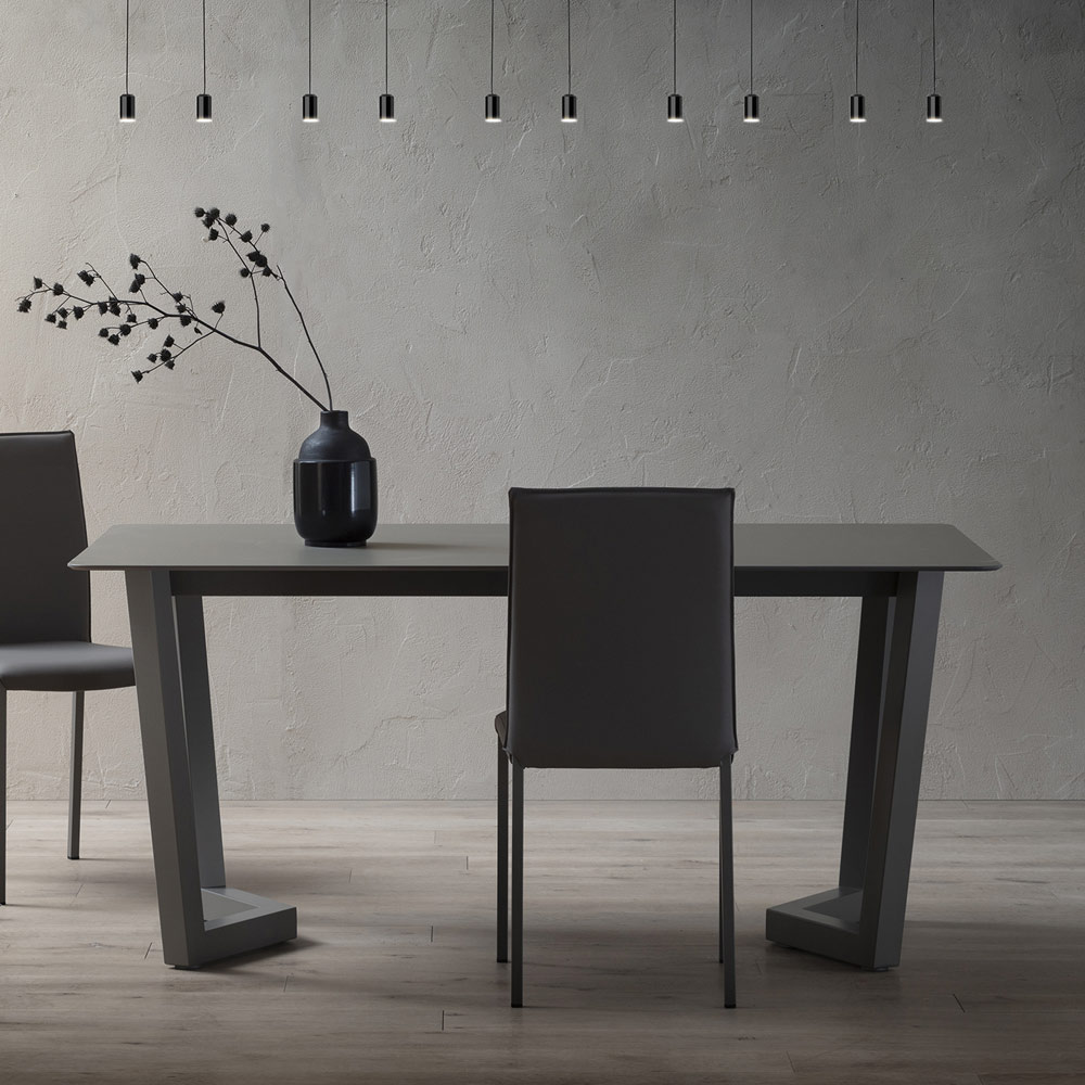 Extendable dining table in layered fenix with metal base Made in Italy.