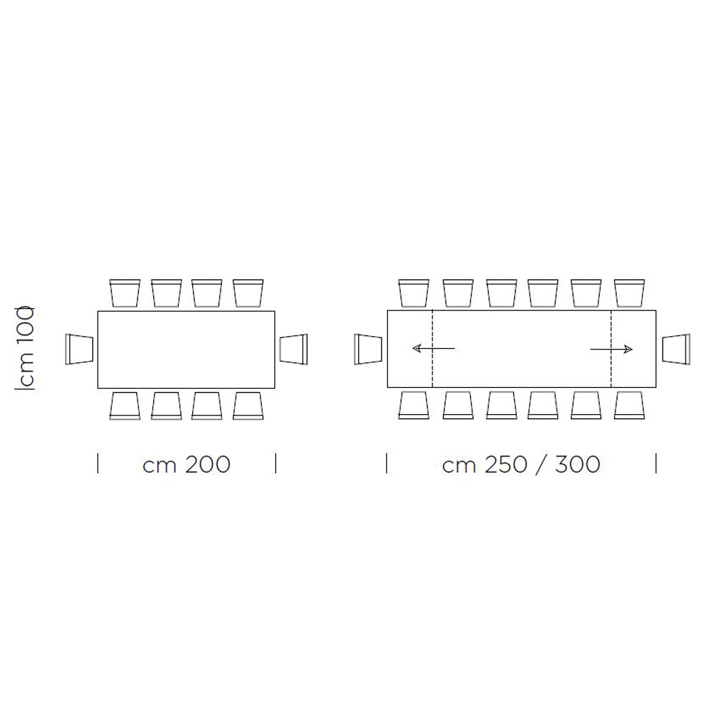 - L 200/300 x P 100 x H 76 cm 14 seats (2 extensions of 50 cm).