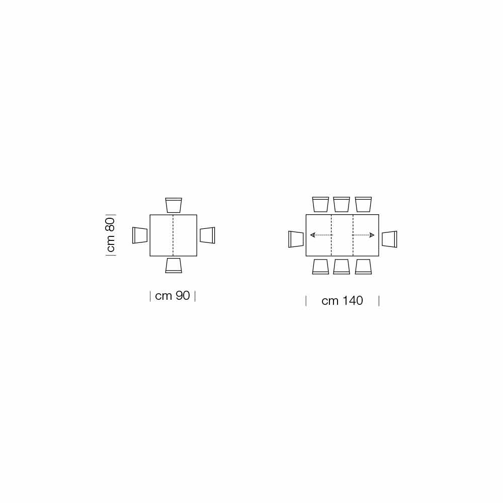 L 90 (140) x P 80 x H 76 cm 8 seats extendable with a 50cm extension inside;